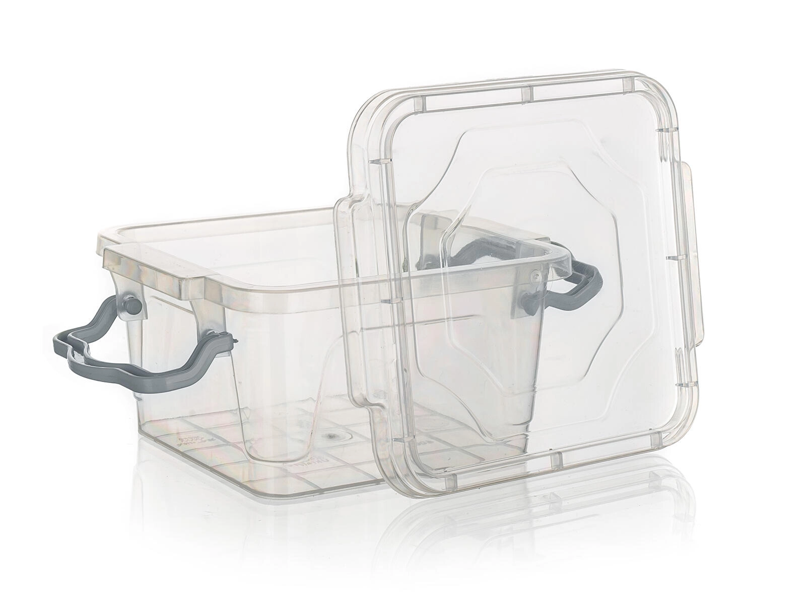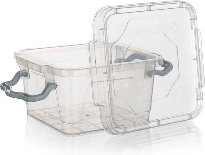 - transparent boks, turkise håndtag