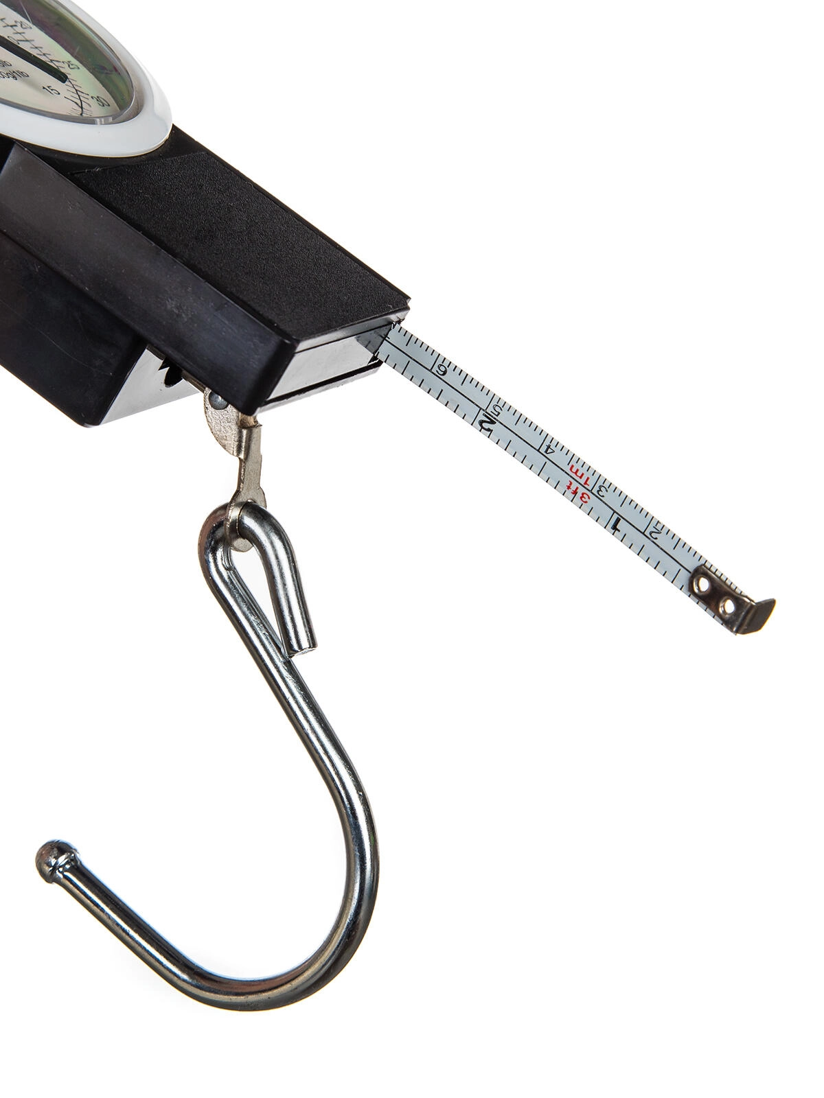 Den omfatter et integreret målebånd (op til 100 cm), som du kan bruge til at måle både kabine- og indchecket bagage. Solid metalkrog og holdbart kabinet sikrer sikker ophængning og lang levetid, mens det ergonomiske håndtag gør det lettere at løfte selv tungere tasker komfortabelt.