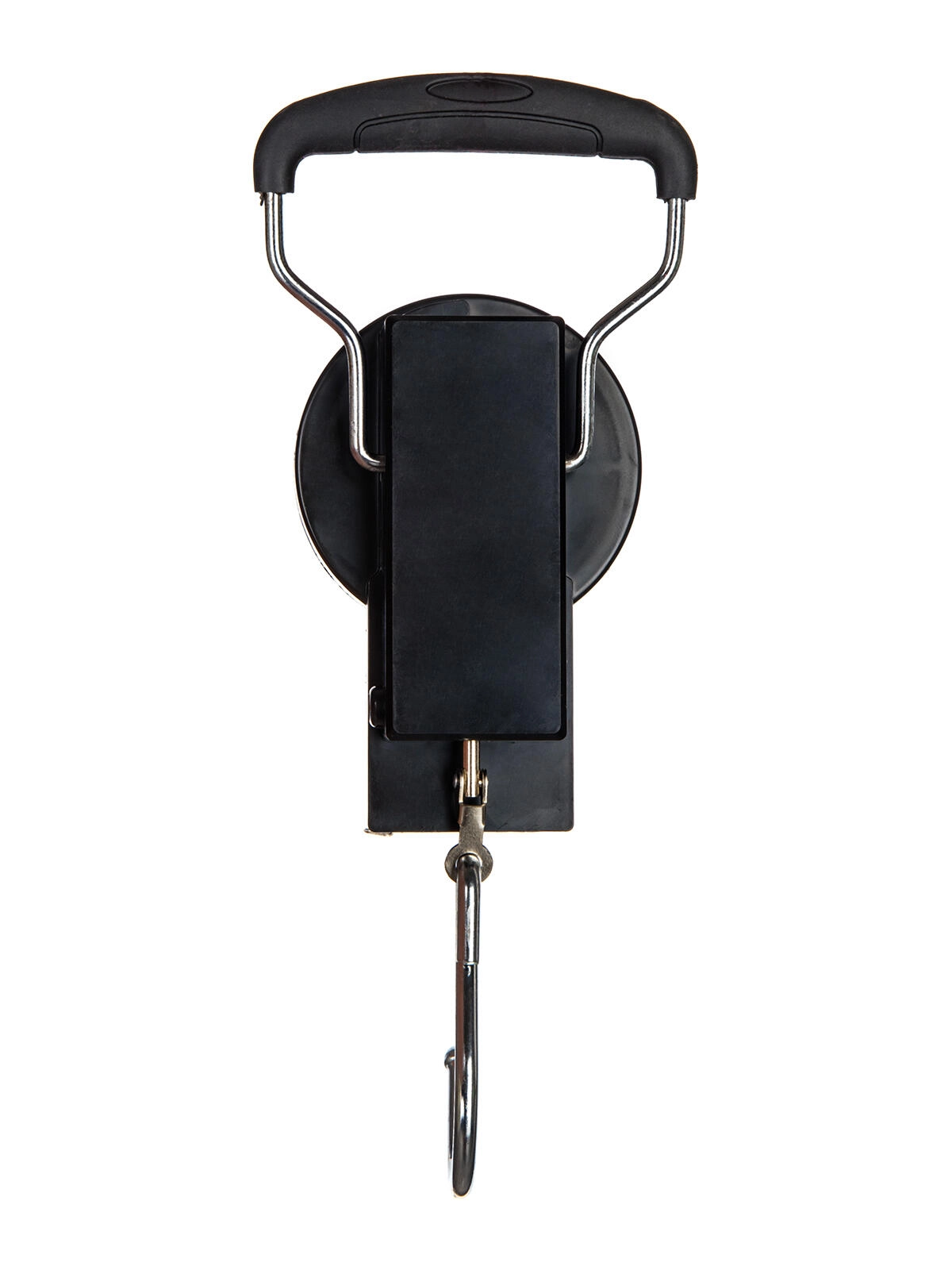 Den robuste metalkrog holder sikkert selv tungere kufferter, og det ergonomiske håndtag sikrer komfortabel løftning og stabilt greb.