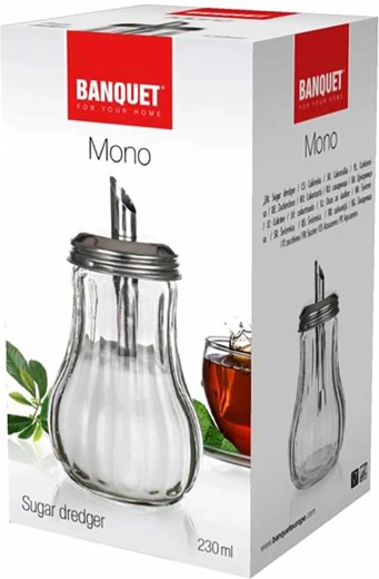 Doseringssukkerbøtten MONO er en elegant og funktionel hjælper til både bord og bar. Det gennemsigtige glas giver dig konstant overblik over sukkermængden, mens det rustfri låg i stål 18/0 med en tykkelse på 0,40 mm sikrer lang levetid og nem vedligeholdelse. Takket være den praktiske doseringsåbning hælder du nemt den præcise mængde sukker i kaffe, te eller desserter.