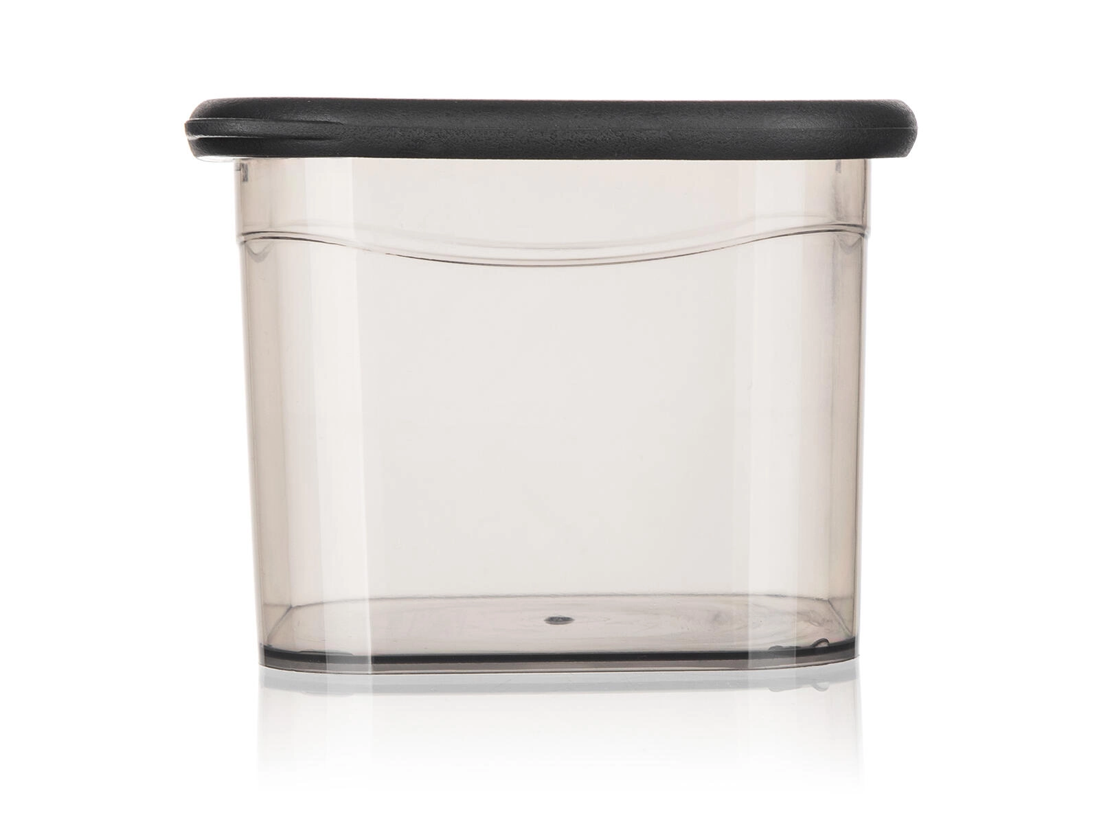 Det gennemsigtige røgfarvede design gør det let hurtigt at tjekke indhold og mængde uden at åbne låget.