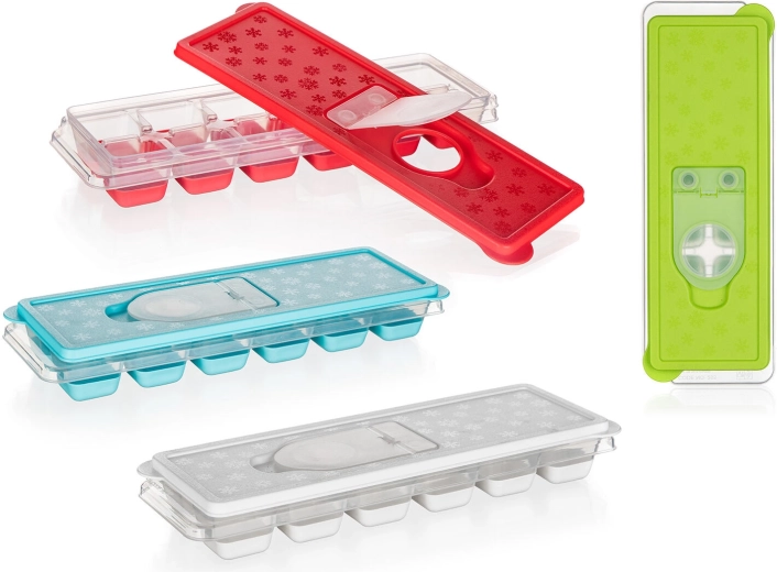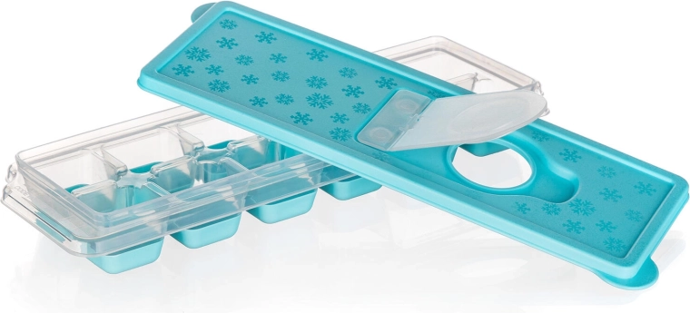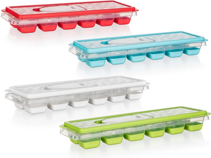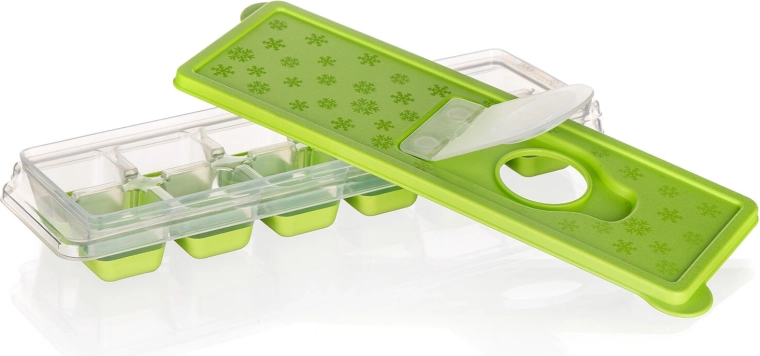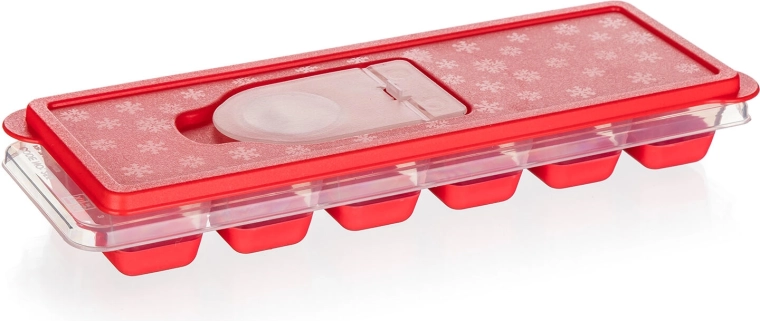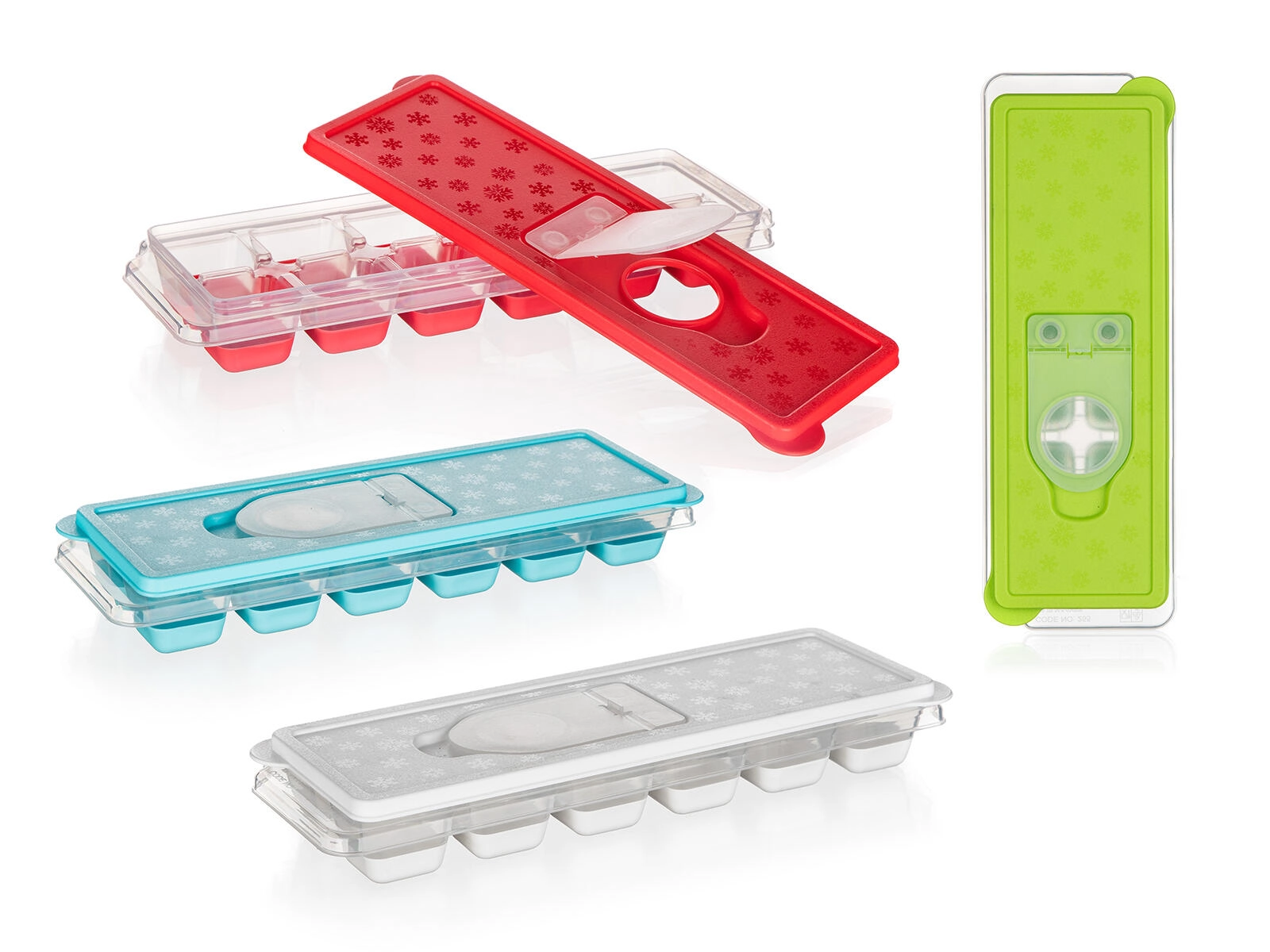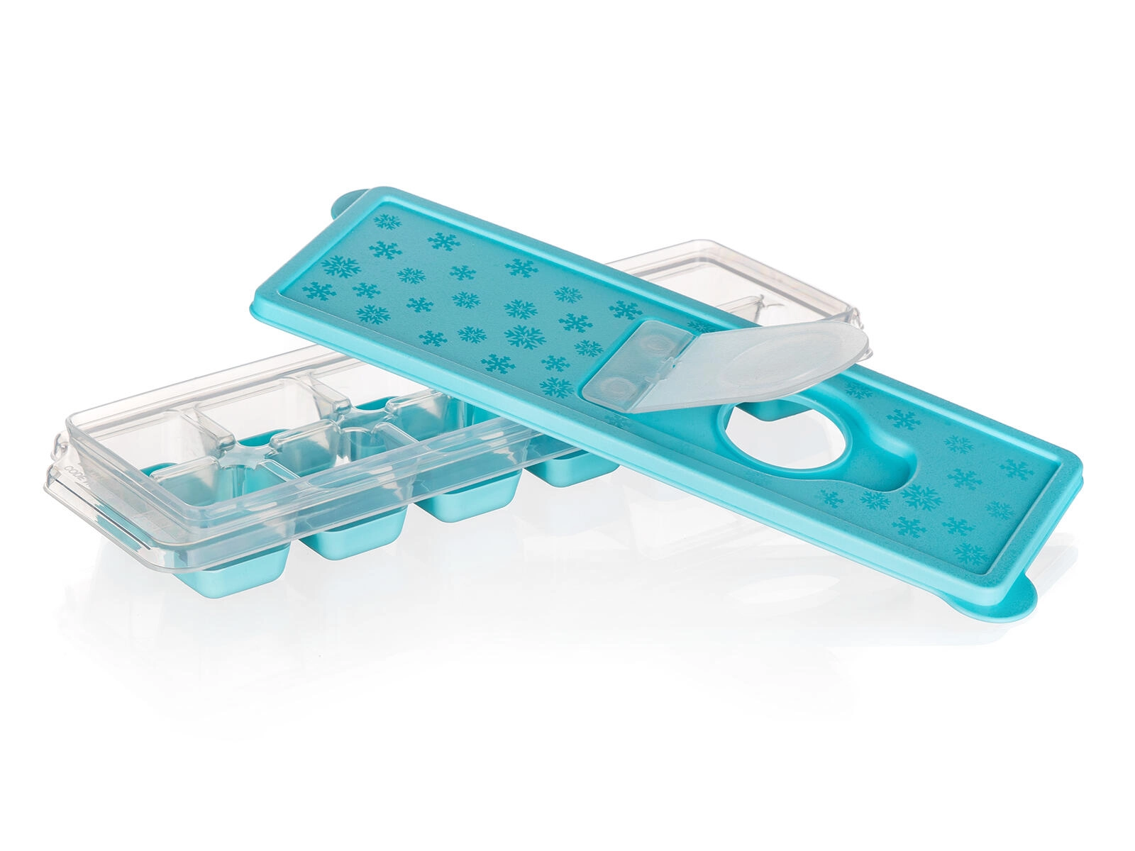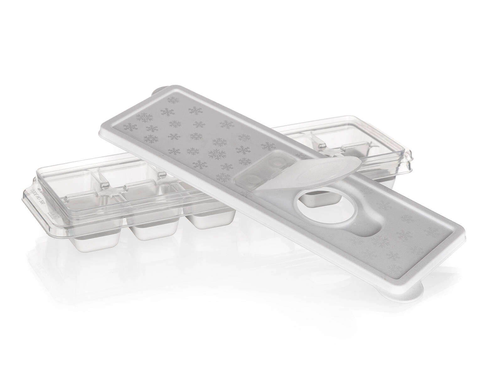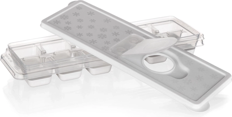 Det tætsluttende låg beskytter isen mod at optage lugte fra fryseren og muliggør sikker stabling af flere forme oven på hinanden.