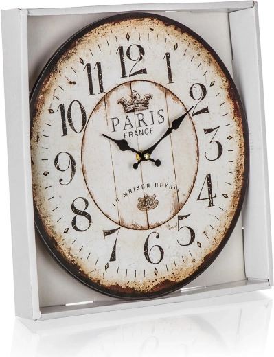 Bring et strejf af fransk elegance ind i dit hjem. Væguret Paris med en diameter på 34 cm imponerer med heldækkende dekor og et tidløst udtryk, der passer til både moderne og rustikke interiører. Takket være det overskuelige urskive kan du nemt aflæse tiden ved første øjekast.