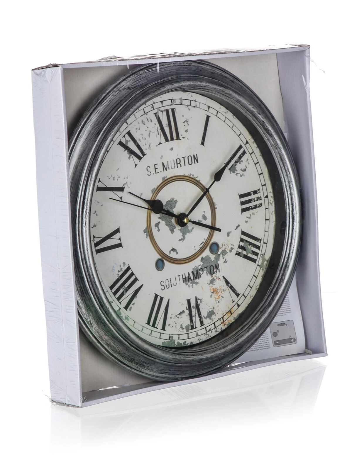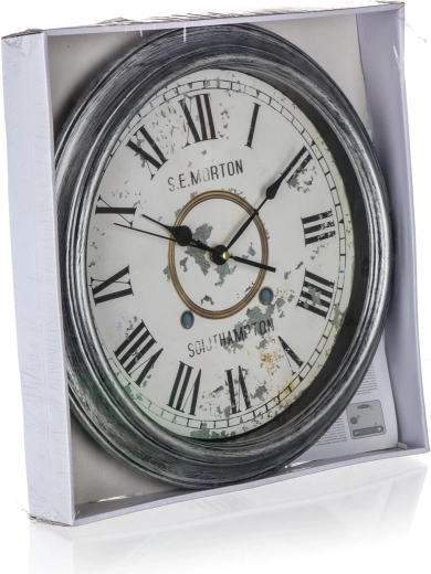 Stilfuldt vægur i VINTAGE-design med en diameter på 35 cm, som giver interiøret et unikt præg. Den runde form, fuldfladedekor og det stille urværk, der kører på 1× AA-batteri (ikke inkluderet), gør det til et ideelt tilbehør til stue, soveværelse og en stilfuld køkken.