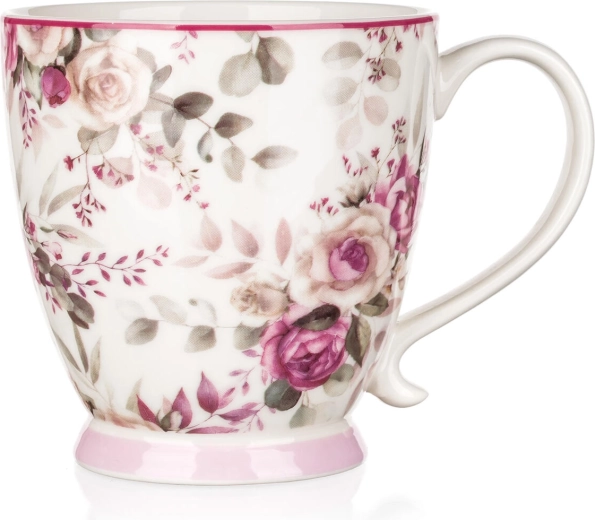 Oplev serveringens charme med ROSE-kruset, som imponerer med et tidløst blomstermotiv i rosa og grønne nuancer. Den rummelige kapacitet på 460 ml giver komfortabel nydelse af dine yndlingsdrikke, både varme og kolde, mens det behageligt formede hank sikrer et godt greb.
