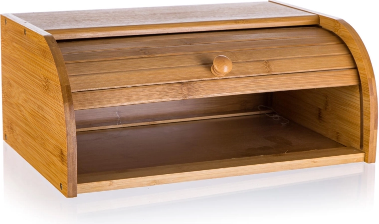 Elegant brødboks i bambustræ med rullelåg er ideel til daglig opbevaring af brød, boller og sødt bagværk. Bambus er robust, let og bevarer sit naturlige udseende og sin hygiejne i lang tid takket være overfladebehandling med spiselig olie. Naturlig ventilation hjælper med at opretholde optimal fugtighed, så bagværket hverken bliver fugtigt eller tørrer unødigt ud.
