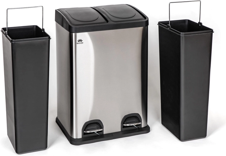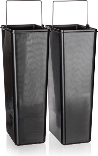Takket være de kompakte mål og den rektangulære form kan spanden nemt placeres op ad en væg eller i et hjørne. Børstet rustfrit stål ser elegant ud og viser færre fingeraftryk. Separate låg hjælper med at holde lugte inde og bevare orden i hverdagen.