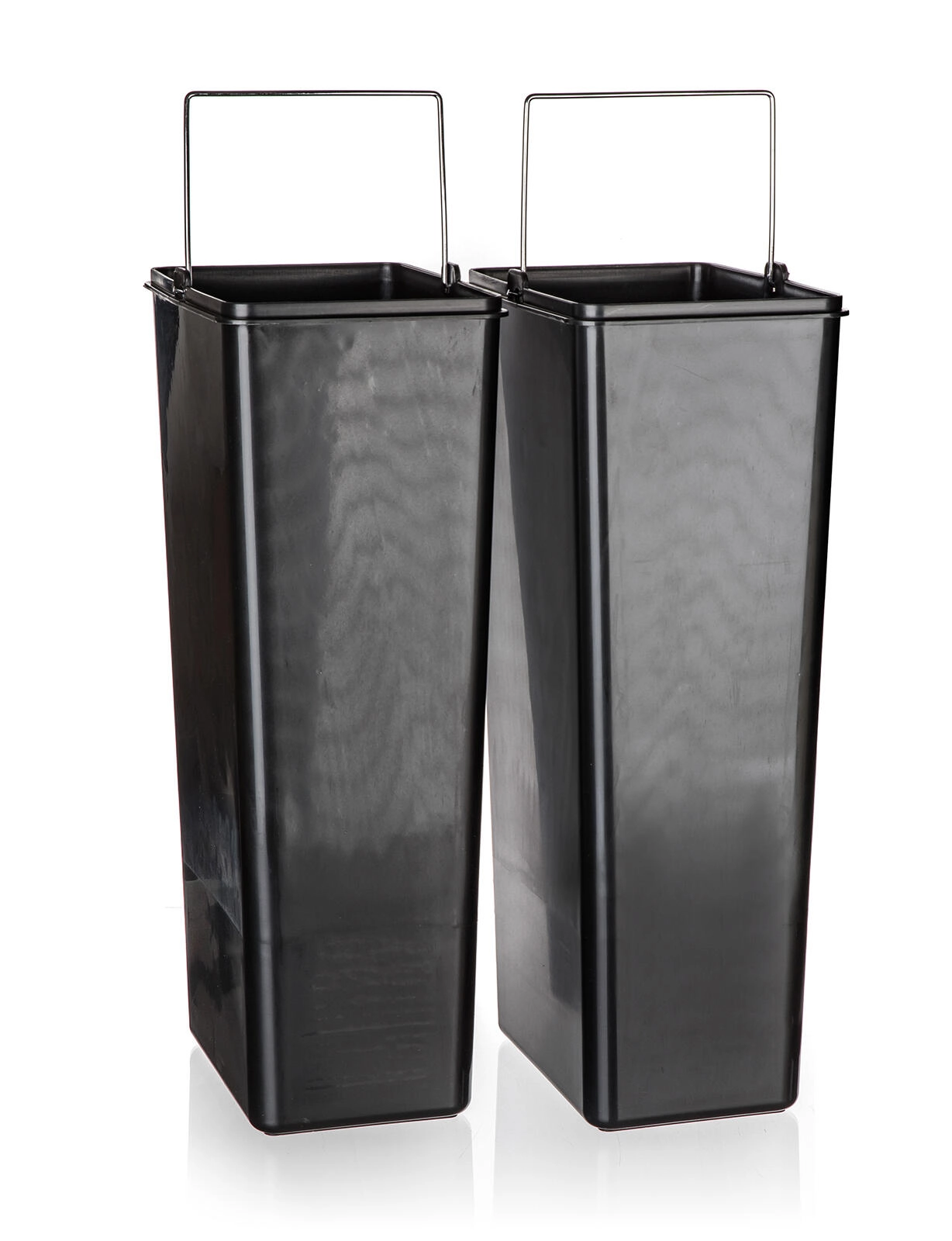Plastindsatser med hank tages let ud, så du kan skifte pose og holde spanden helt ren.