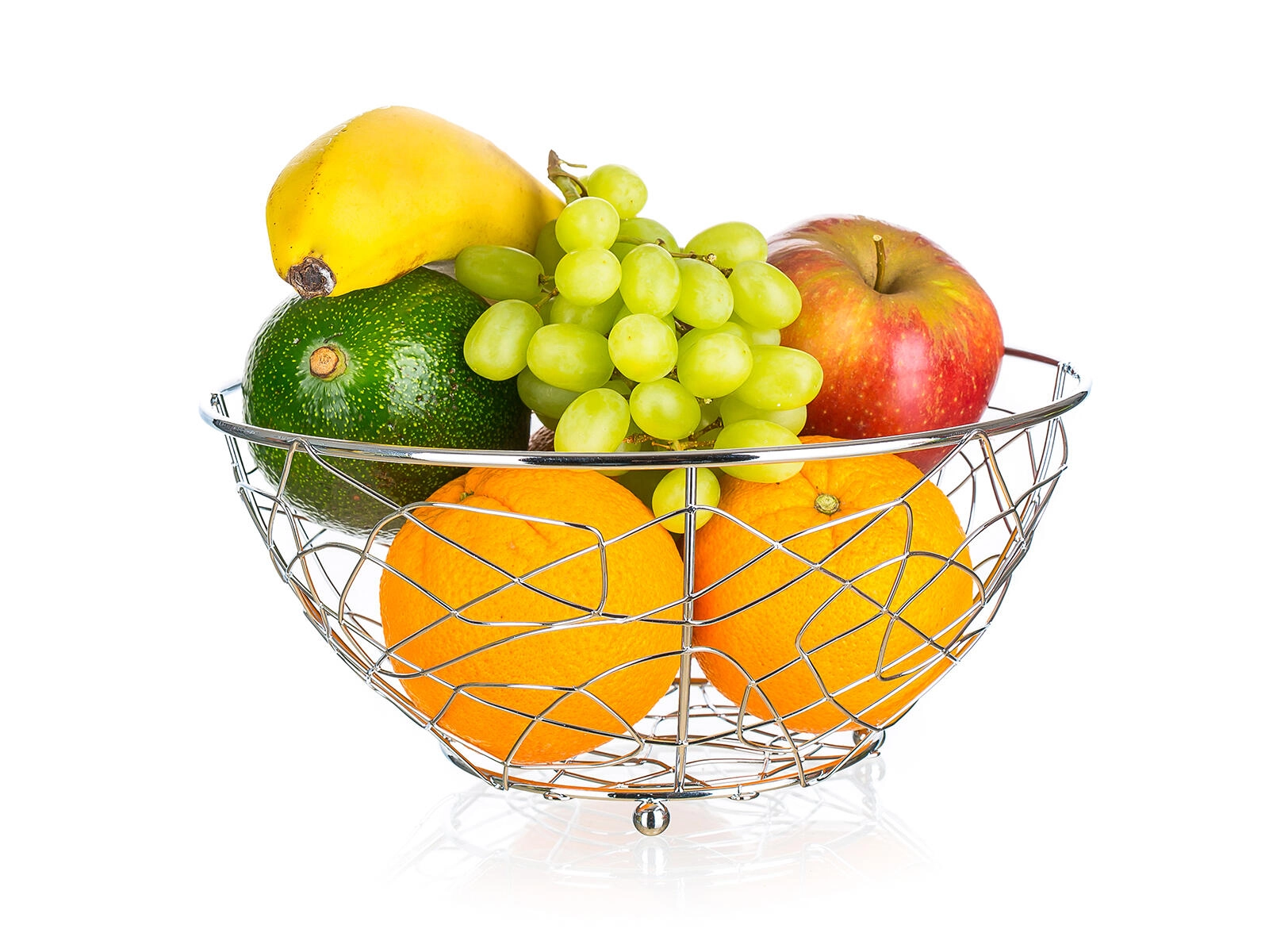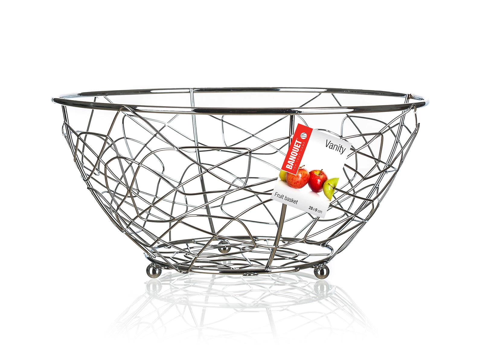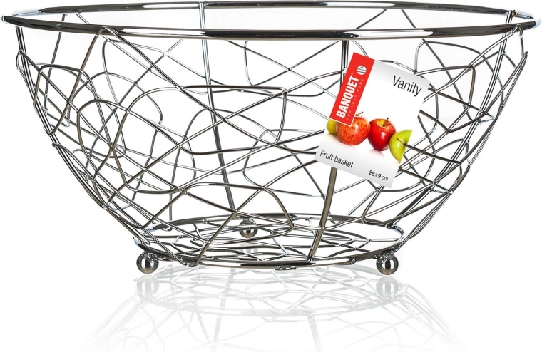 Den praktiske og elegante frugtkurv VANITY bliver et funktionelt blikfang i dit køkken. Den lette trådkonstruktion med små fødder giver stabilitet, bedre hygiejne og luftgennemstrømning, så frugten holder sig frisk længere. Det tidløse kromlook passer til både moderne og klassiske interiører.