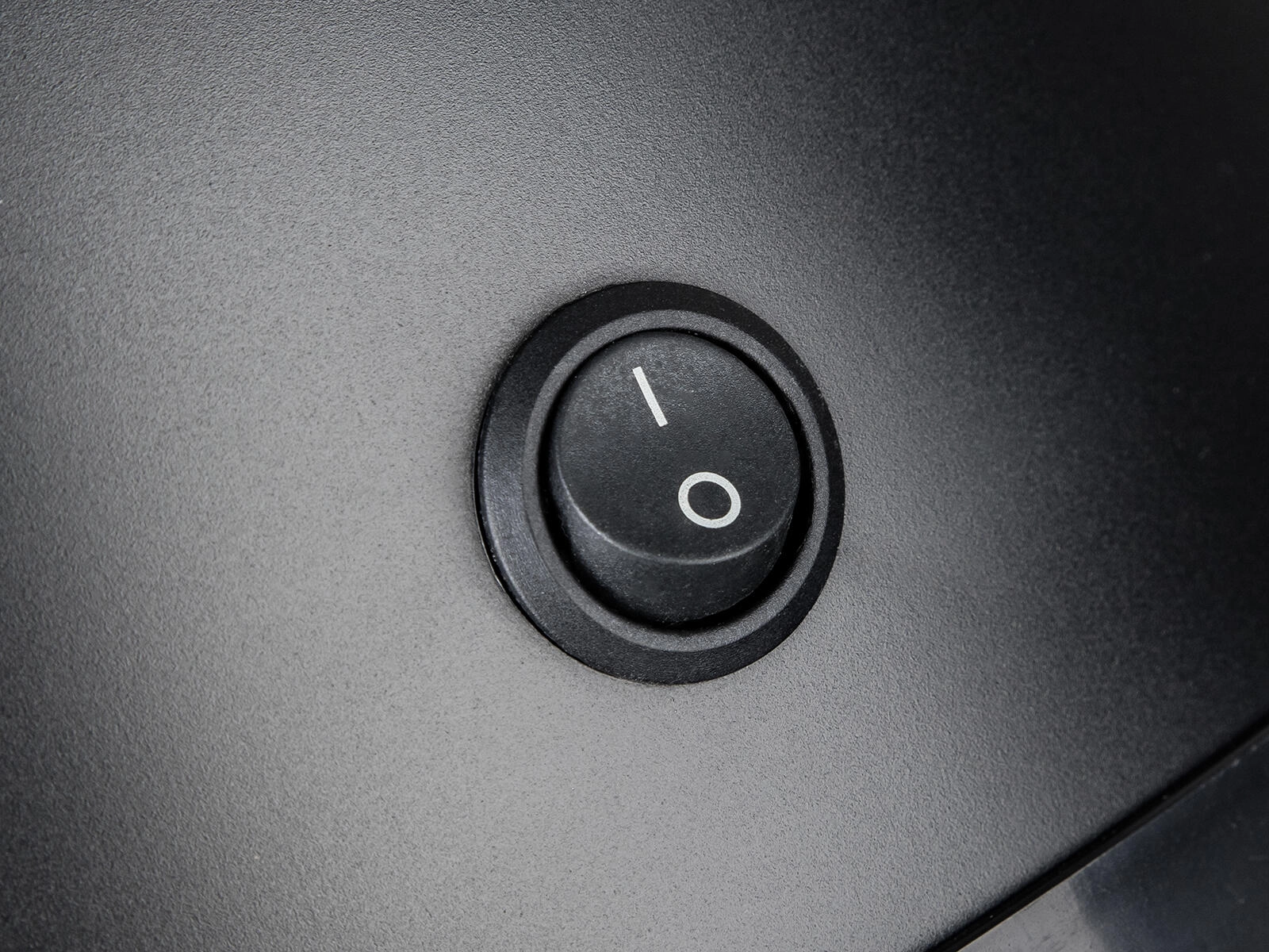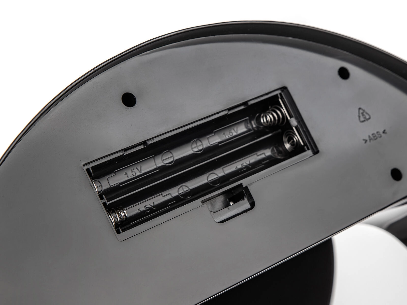 Det runde korpus i rustfrit stål med sort lak og robuste plastdele er let at rengøre og passer perfekt ind i moderne interiører.