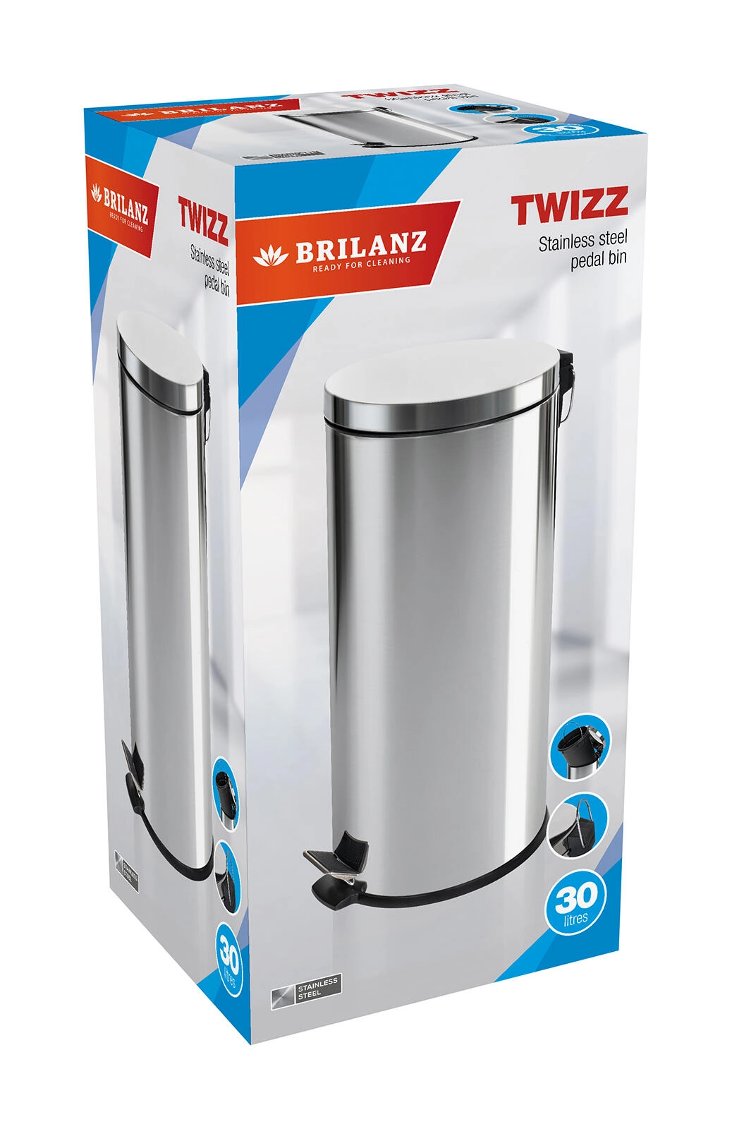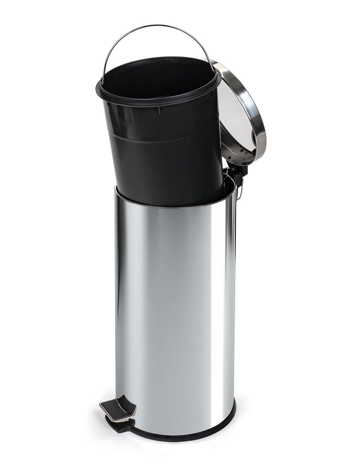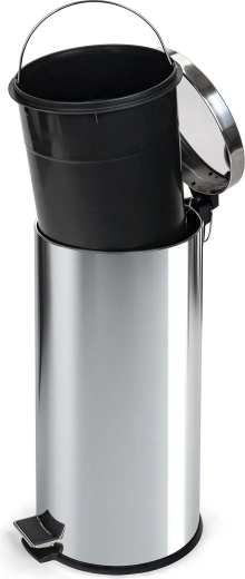Denne pedalspand i rustfrit stål med en kapacitet på 30 liter kombinerer moderne udseende med funktionelle detaljer for daglig bekvemmelighed. Den blanke overflade i rustfrit stål er holdbar og let at vedligeholde, og pedalmekanismen sikrer åbning uden berøring med hænderne og dermed et højere niveau af renhed.