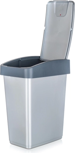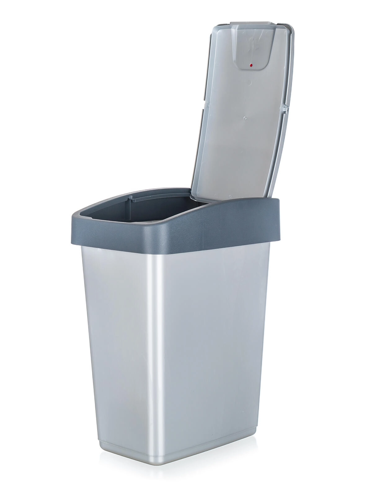 Vippeskraldespand 25 l, rektangulær, plast, sølv/grå