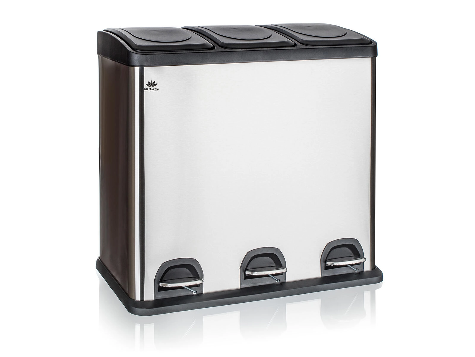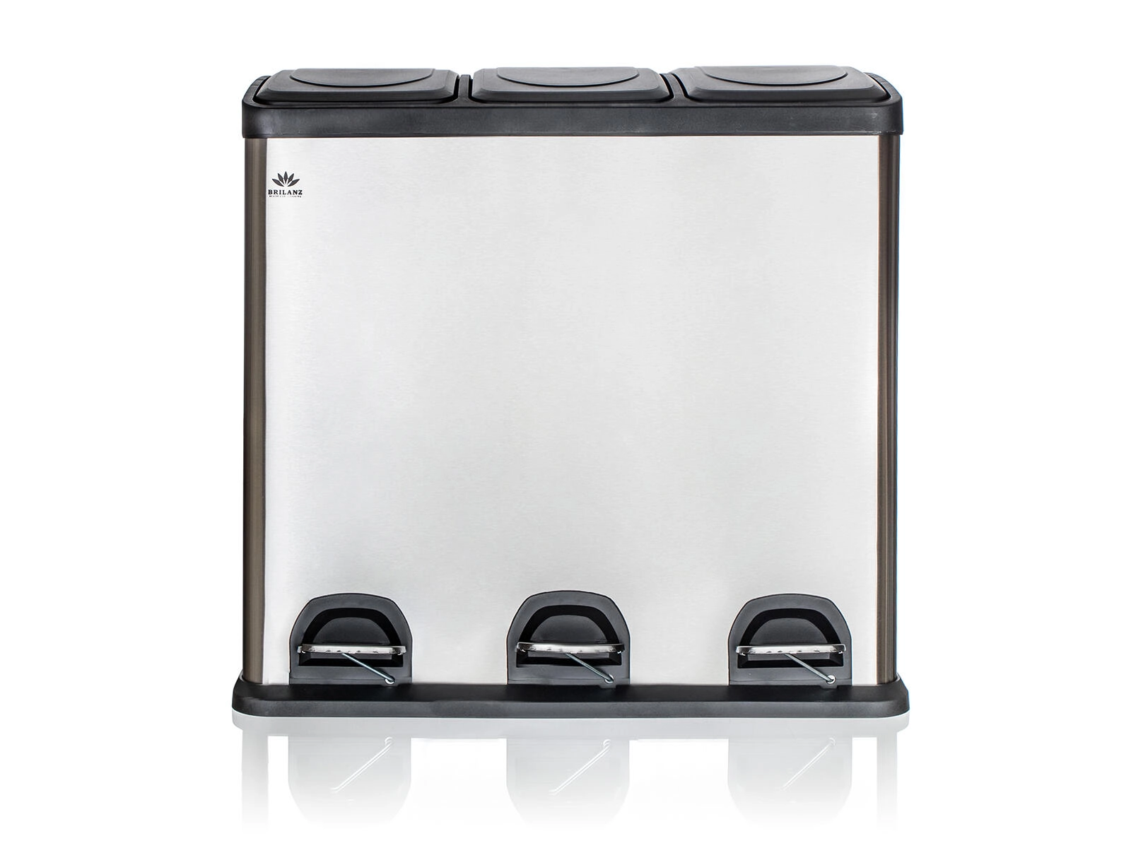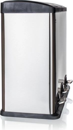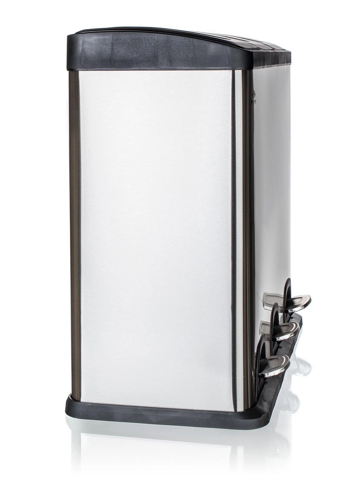 Denne elegante spand i kombinationen af rustfrit stål og holdbar plast giver en overskuelig og ren løsning til affaldssortering. Tre uafhængige pedaler styrer separate låg, så du kun åbner det kammer, du har brug for – uden berøring med hænderne og med minimale lugte.