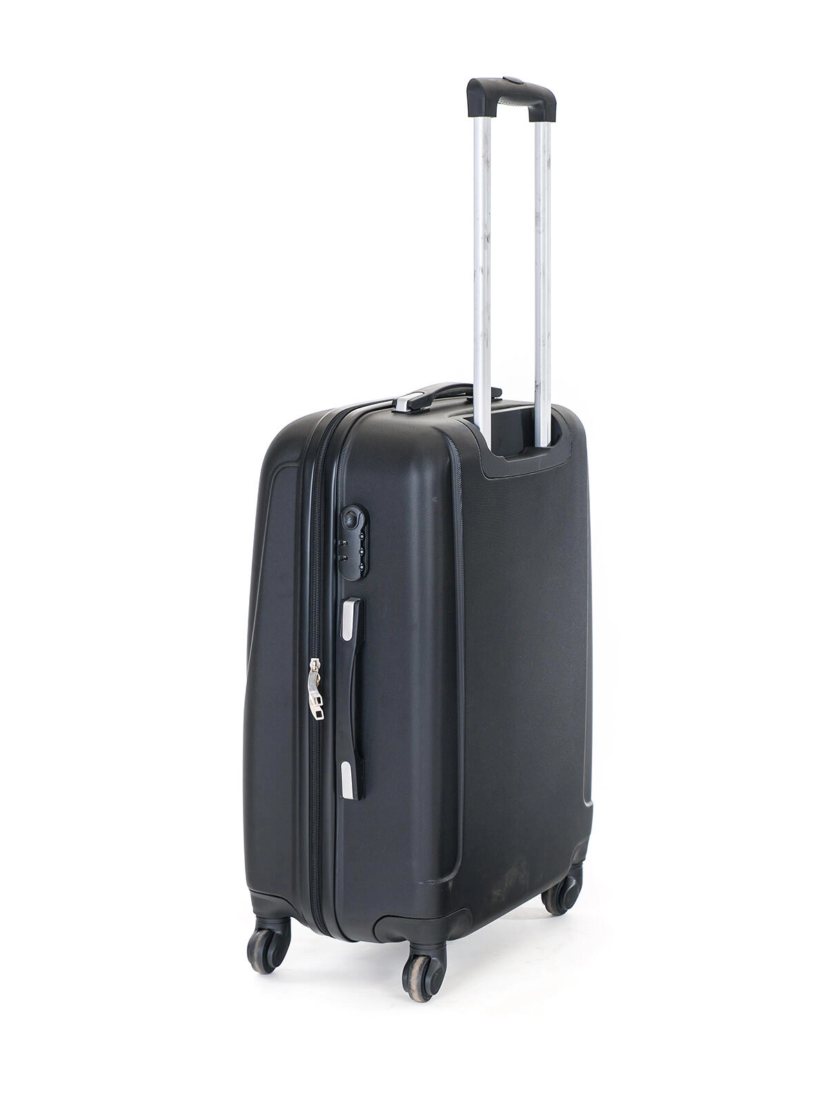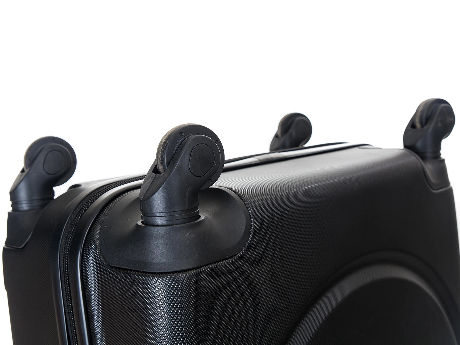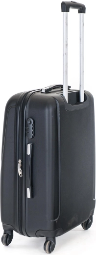 Den stilfulde sorte hardcase-kuffert i solid ABS-plast giver pålidelig beskyttelse af dine ejendele mod stød og slid. Takket være de fire multidirektionelle hjul er håndteringen nem selv i overfyldte lufthavnsområder. Det teleskopiske håndtag med lås og flere højdepositioner sikrer behagelig styring for enhver rejsende.