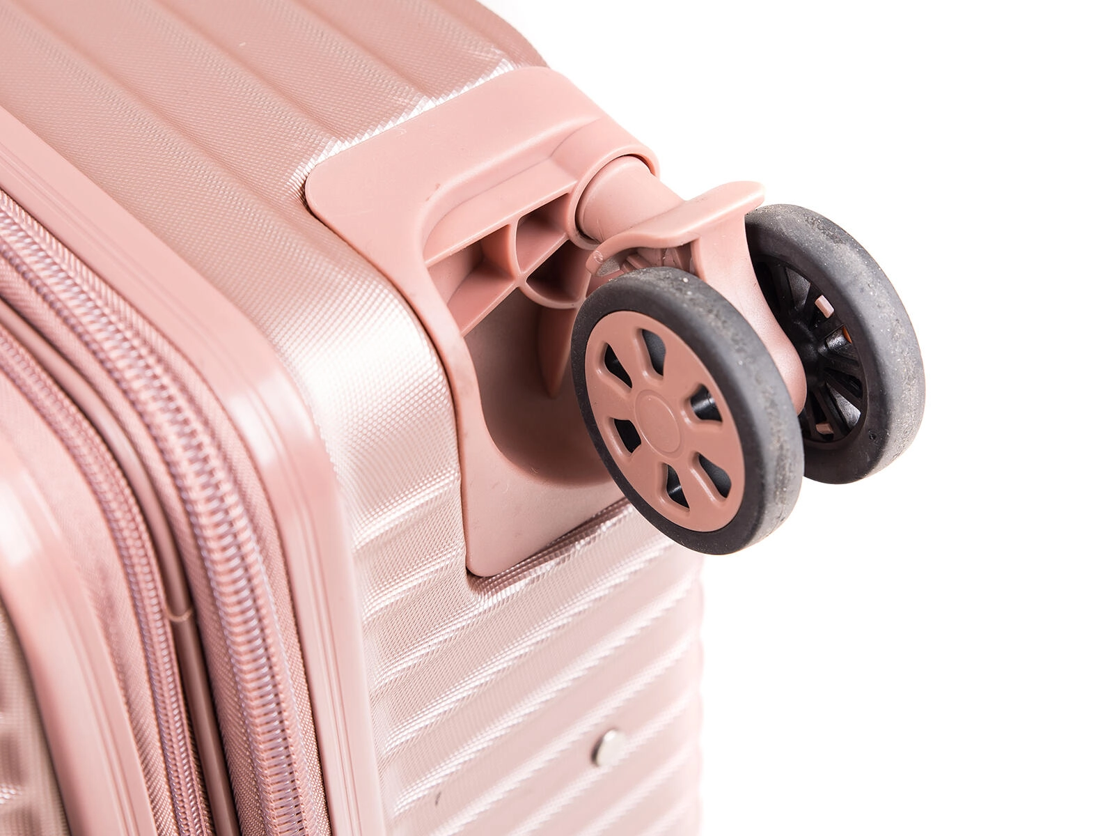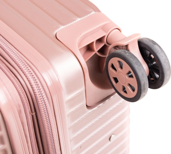 Fire dobbelthjul, der roterer 360°, sikrer stabilitet og glidende kørsel på både fliser og tæpper, så du let kan styre kufferten med én hånd.
