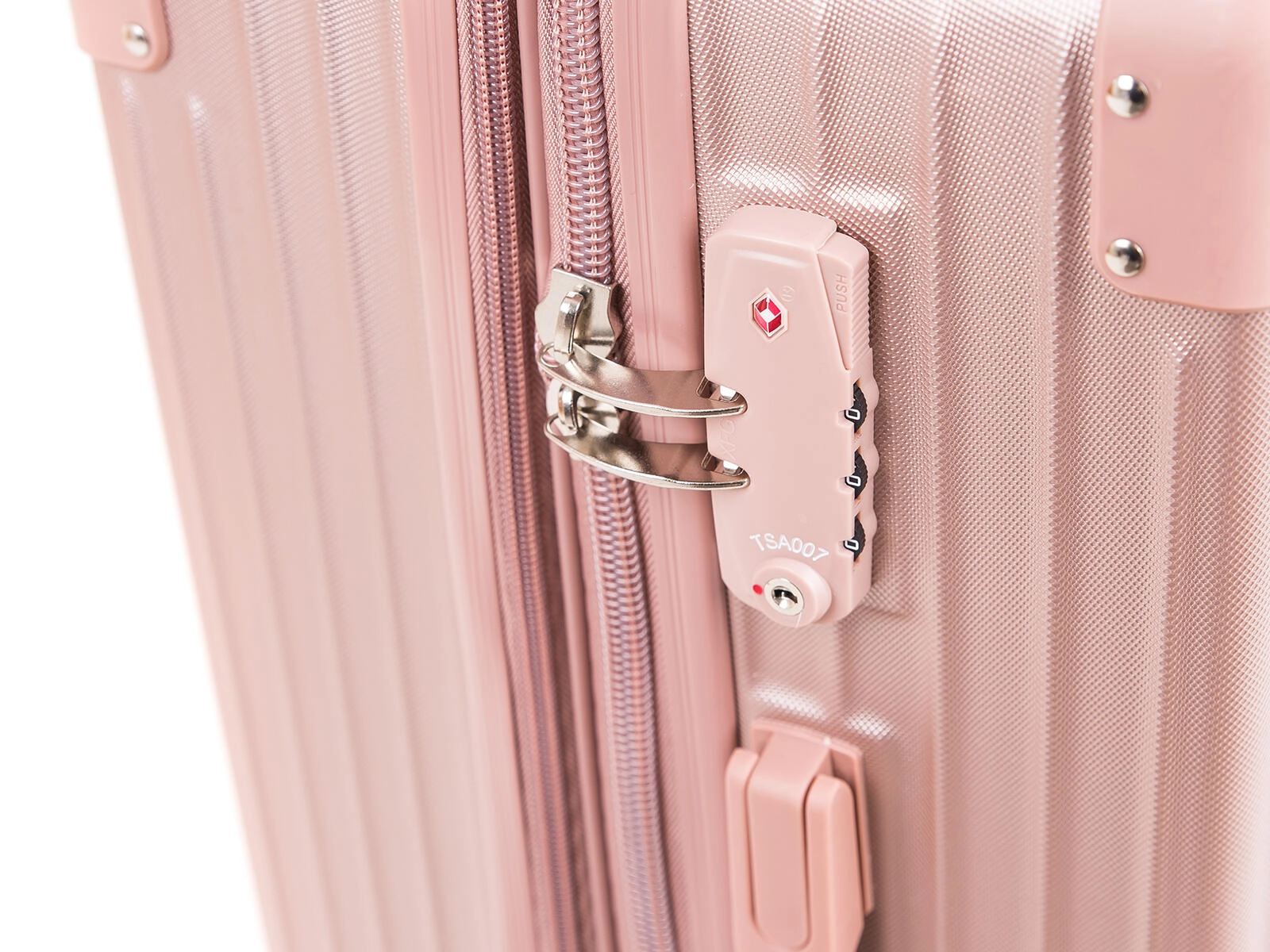 Lynlåsvognene samles i den integrerede TSA-lås – ideel til flyrejser og hurtige sikkerhedstjek uden at beskadige bagagen.