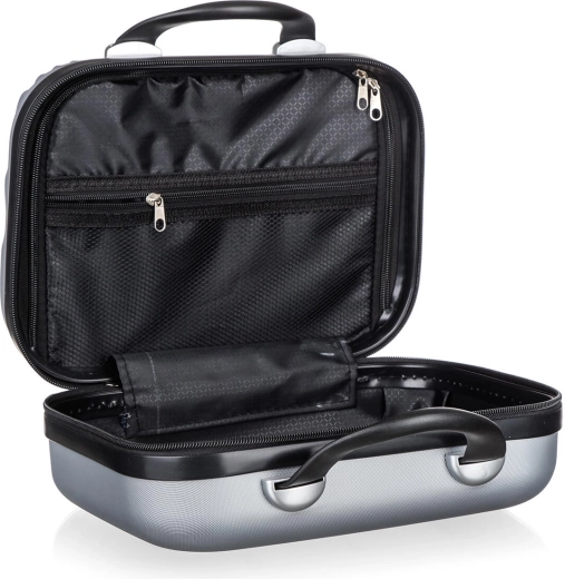 Den praktiske og lette hardcase-kuffert på 10 l er fremstillet af kvalitets-ABS-plast, som er stødfast og beskytter dine ejendele. Det elegante grå design suppleres af stabile fødder til opstilling og en bagstrop, der gør det nemt at skubbe den ned over teleskophåndtaget på en kuffert – så bliver rejsen maksimal bekvem.