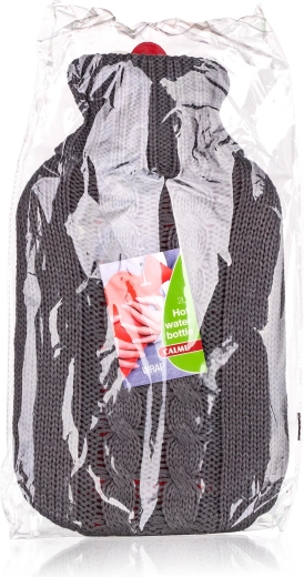Varmtvandsflasken på 2 liter er en pålidelig hjælper til hjemlig varme og komfort. Det grå strikkede betræk beskytter huden mod overophedning og forlænger varmeholdningen, mens den brede hals med lukning gør påfyldning af varmt vand let og sikker. Målene 20 × 36 cm giver en ideel størrelse til ryg, mave og fødder.