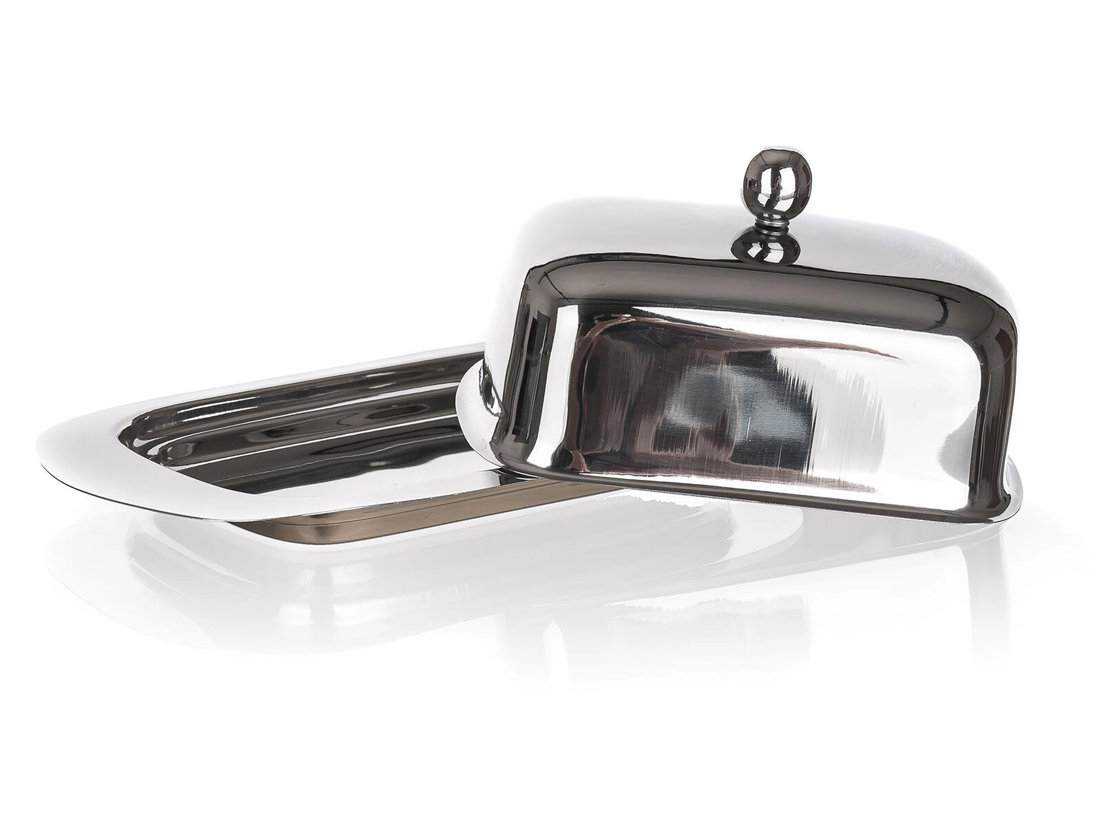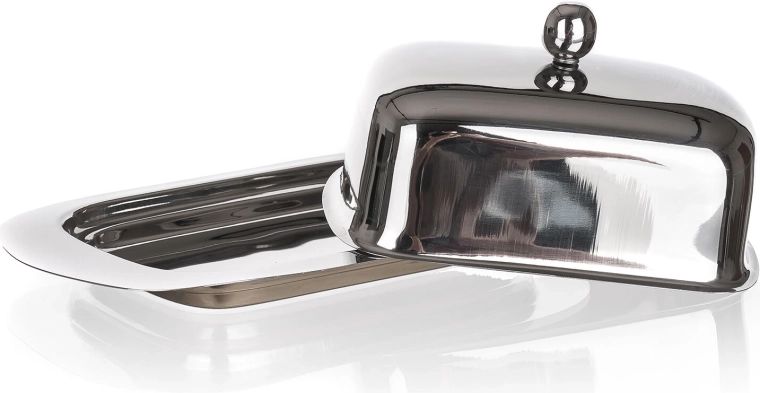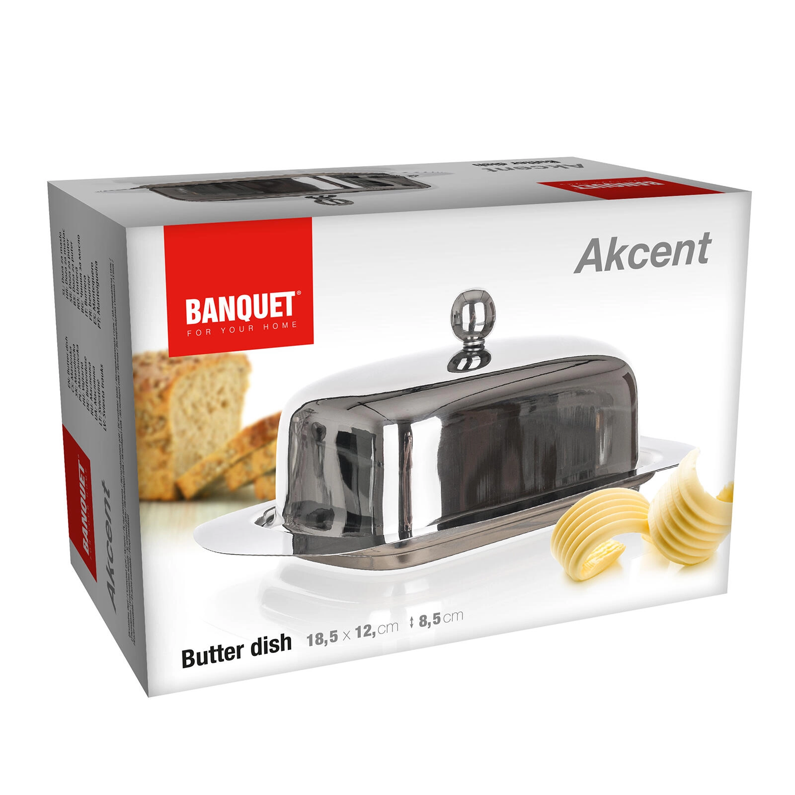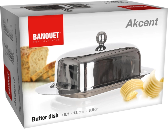 Smørboksen AKCENT i rustfrit stål er en praktisk hjælper til både opbevaring og servering af smør. Det minimalistiske look passer til både moderne og klassiske køkkener, og den glatte overflade gør rengøringen nem. Ideel til morgenbordet og når du får gæster.