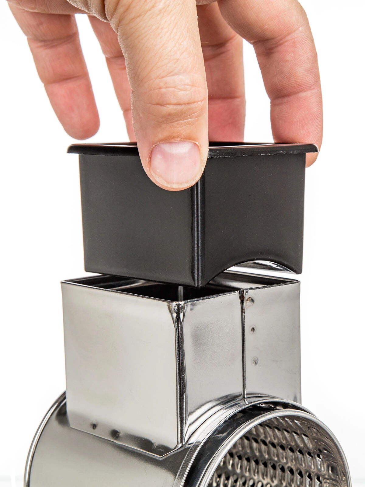 Den rustfri CULINARIA-kværn kombinerer en robust konstruktion med enkel betjening. Den cylindriske tromle i kvalitets rustfrit stål sikrer jævn kværning og rivning af brød, nødder og hårde oste, mens den medfølgende stamper muliggør sikker fødning af råvarer uden risiko for skader.