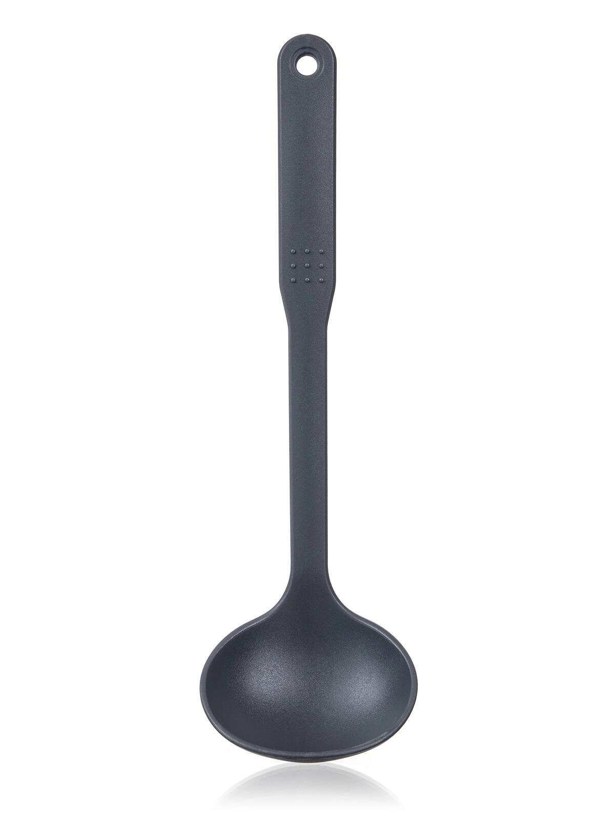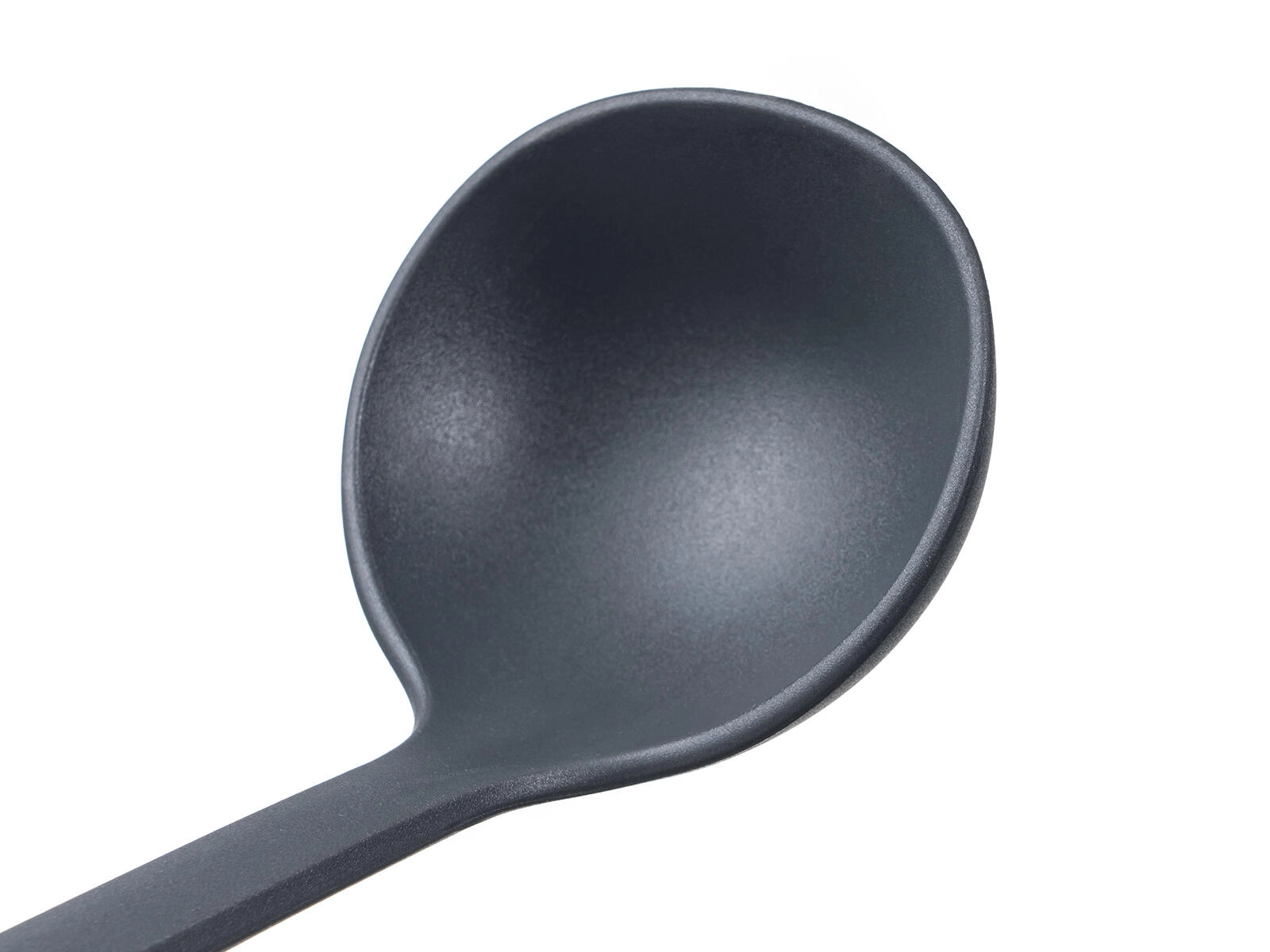 Skeen CULINARIA Grey kombinerer nylon PA66’s holdbarhed og lethed med gennemtænkt ergonomi for nem servering af supper, saucer og bouilloner. Takket være den glatte overflade er den sikker til teflon- og keramiske overflader og efterlader ikke ridser.