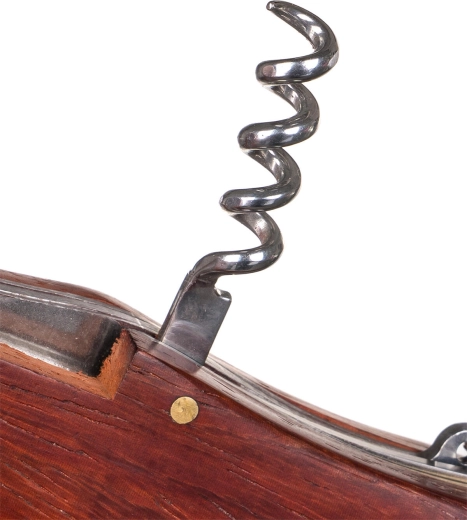 Træhåndtaget giver et behageligt greb og holdbarhed, mens det sammenklappelige design sikrer sikker og kompakt transport. Der medfølger også en proptrækker, som er nyttig på farten og til picnic.