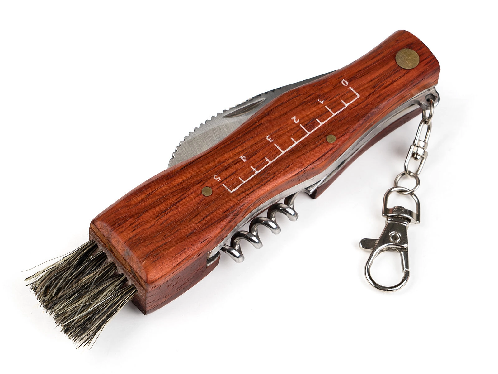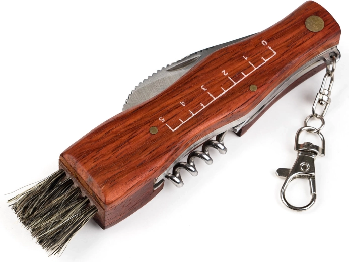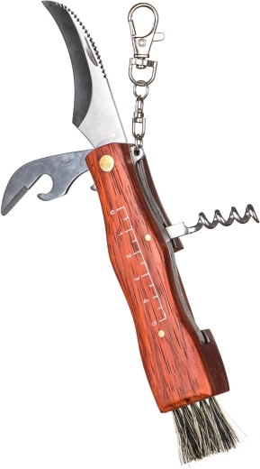 • Multifunktionelt udstyr: klinge 7 cm, børste, proptrækker, karabinhage.