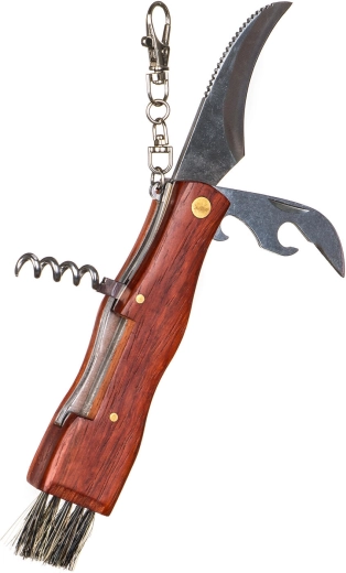 Kniv, børste til rensning af svampe, proptrækker, karabinhage