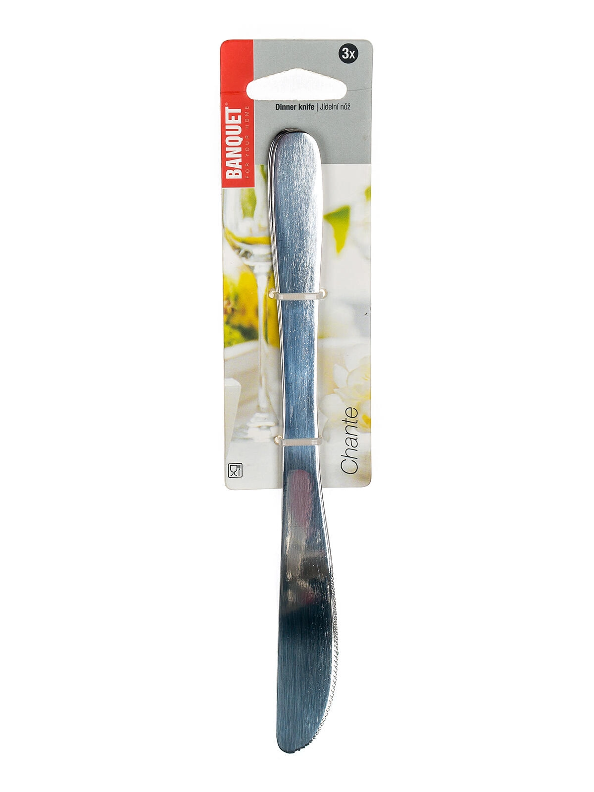 Elegante spiseknive CHANTE i kvalitets rustfrit stål til daglig borddækning. De tilbyder holdbarhed, blank overflade og behageligt greb takket være den afbalancerede længde på 21 cm og materialetykkelsen på 2 mm. I en praktisk pakke med 3 stk.