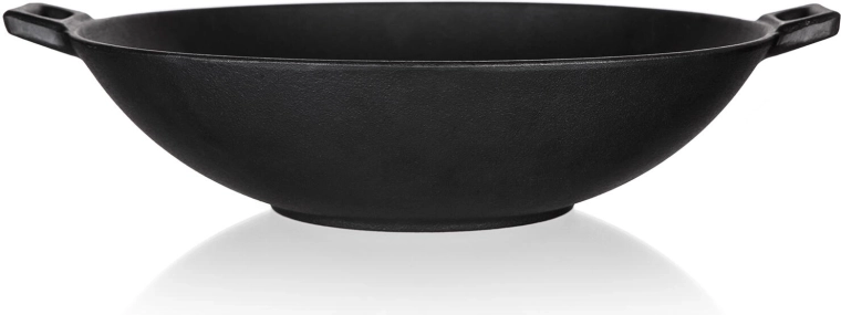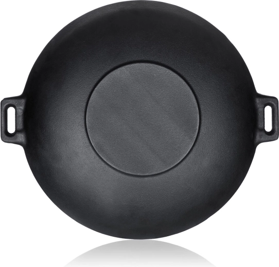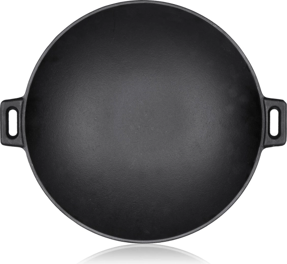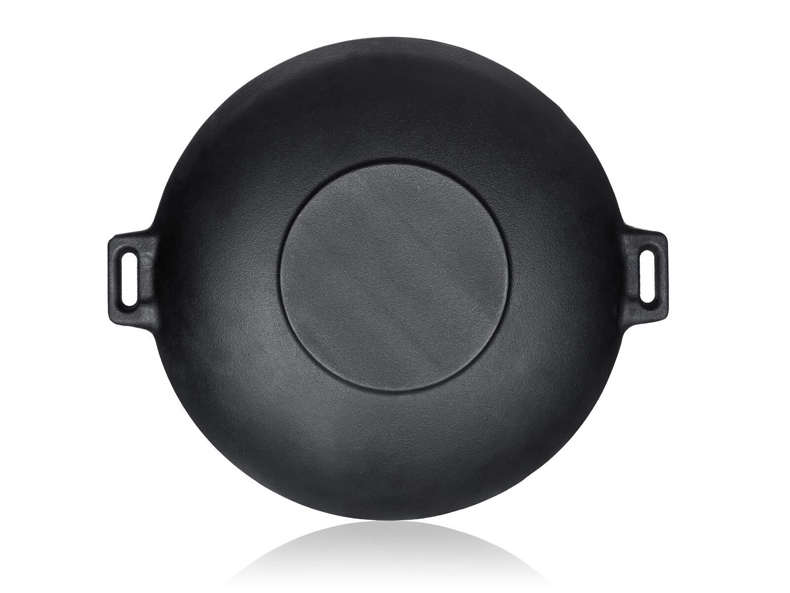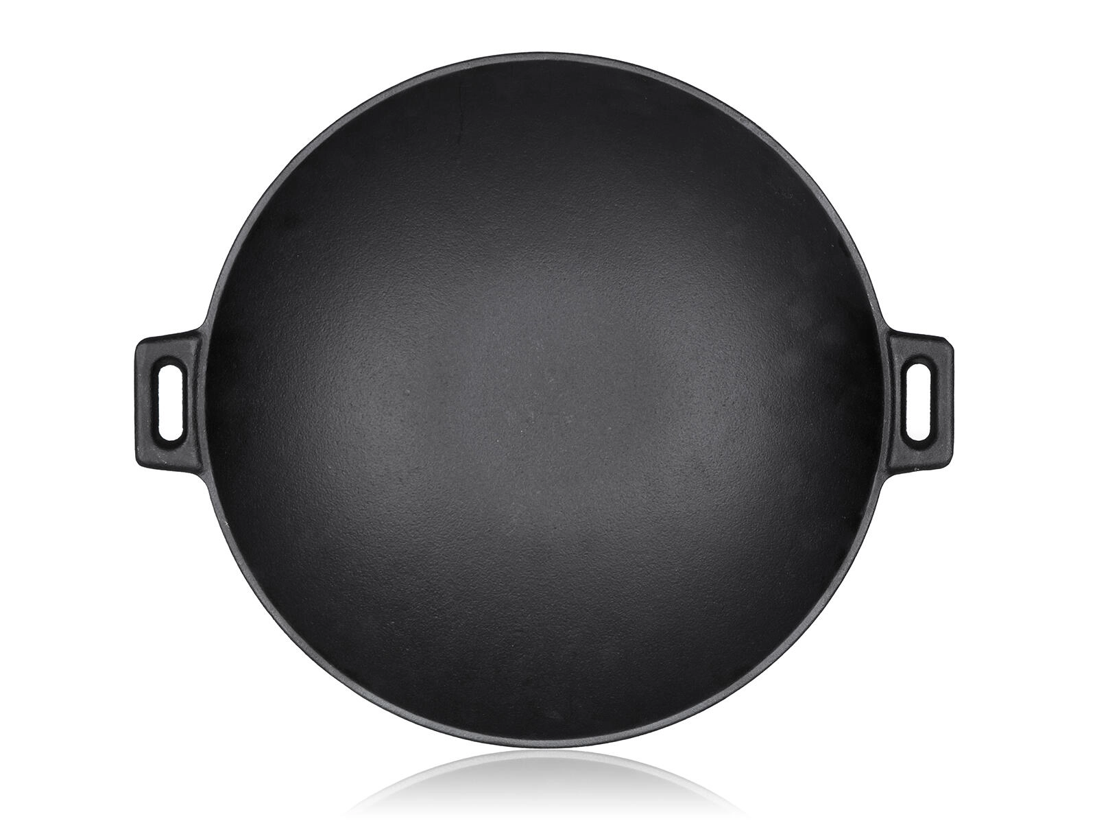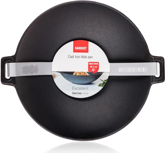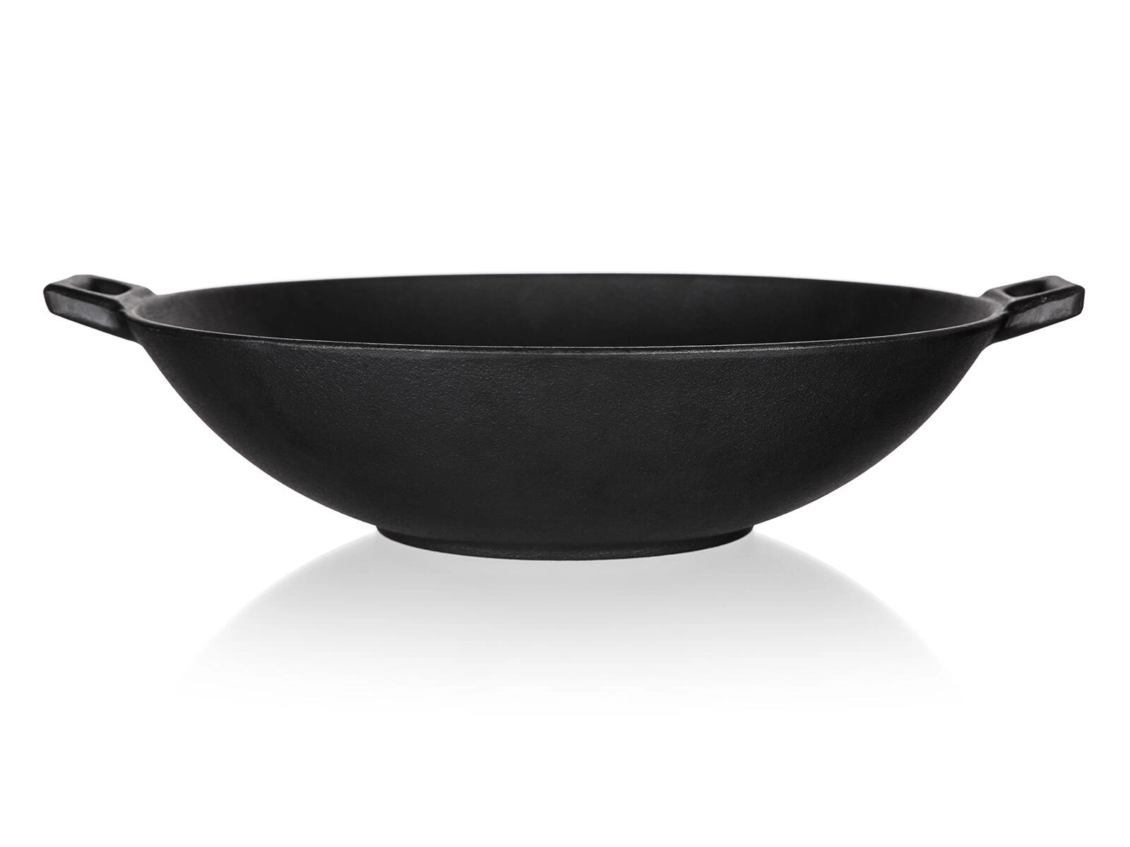 Robust støbejerns-wok med en diameter på 36,5 cm til daglig madlavning på alle typer komfurer og i ovn. Takket være massivt støbejern tilbyder den jævn varmefordeling, høj varmelagring og mulighed for kraftig sautering, stegning, simring og bagning. Efter korrekt indbrænding med olie får den en naturligt slip-let overflade.