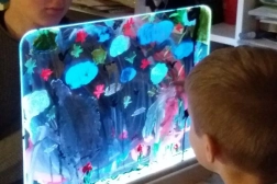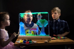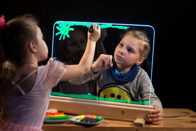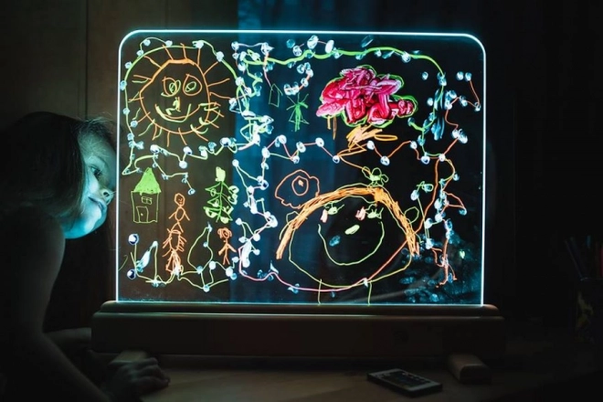 Tænd for børnenes fantasi. Den lysende Jonely-tavle med en robust plade af hærdet glas gør det muligt at male med afvaskelige tuscher, vandfarver og fingre. Overfladen er let at rengøre, og takket være dobbeltsidet tegning kan søskende have det sjovt samtidig. Integrerede LED-dioder i den nederste ramme oplyser hvert strøg smukt og forvandler billeder til strålende værker.