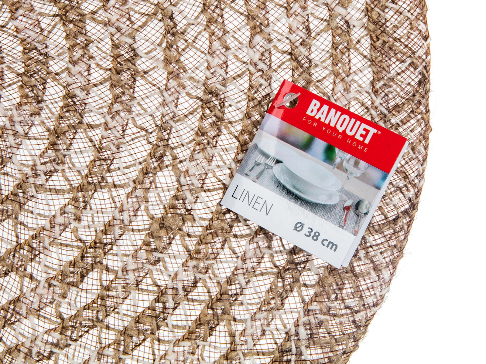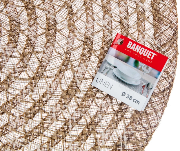 Bring naturlig elegance til borddækningen med LINEN-bordskånet. Kombinationen af jute og polyester giver et behageligt naturligt look, højere holdbarhed og formstabilitet. Den runde form med en diameter på 38 cm er ideel til tallerkener, skåle og dekorationer og beskytter samtidig bordpladen mod varme, ridser og pletter.