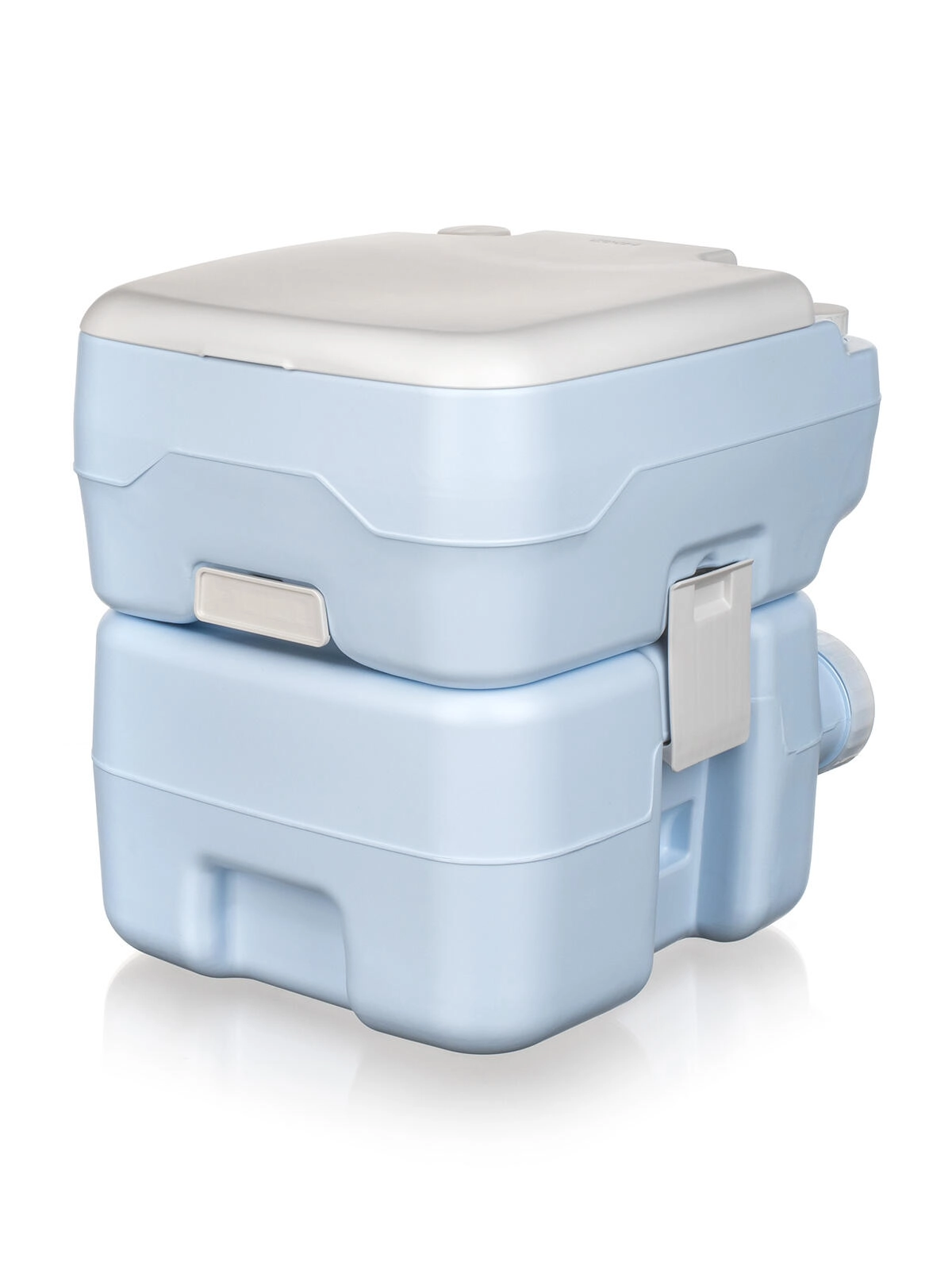 Der medfølger også en påfyldningstragt for nemmere opfyldning af kemiske additiver og rent vand. Takket være de kompakte mål og låsespænder mellem tankene er toilettet let at transportere og sikkert at flytte.