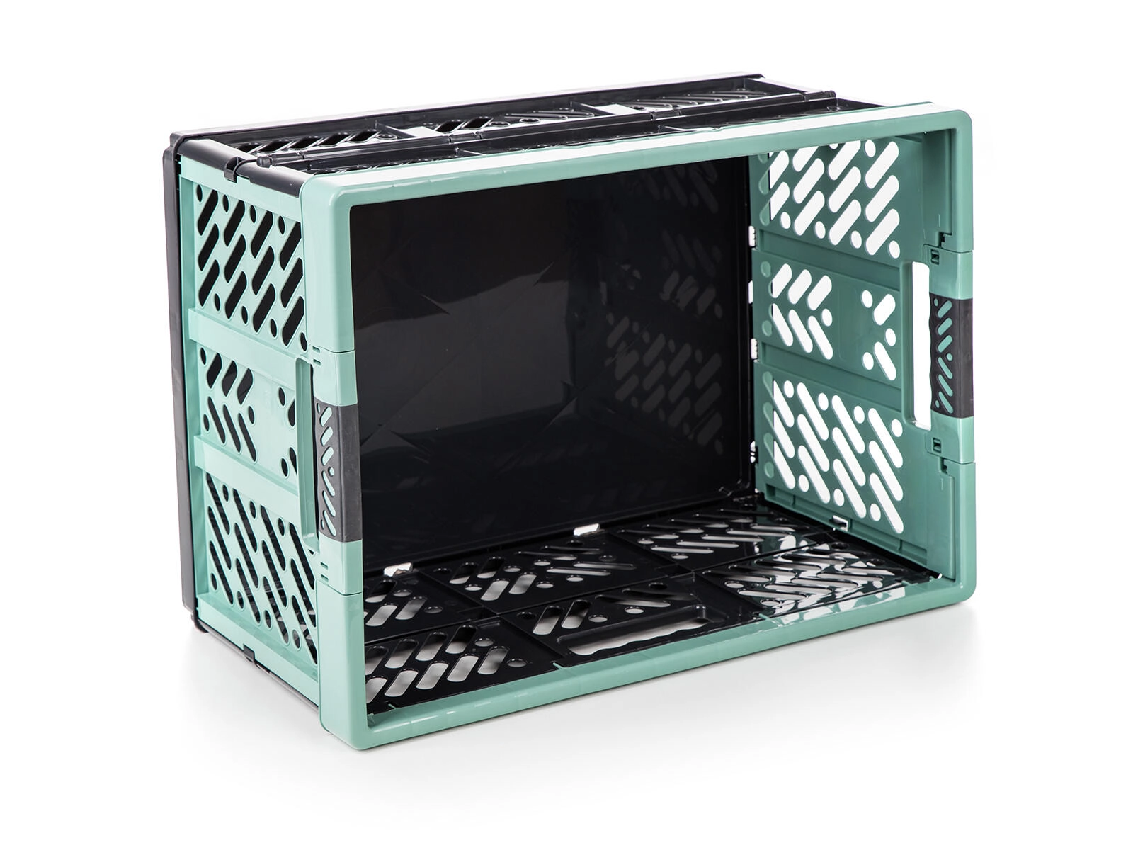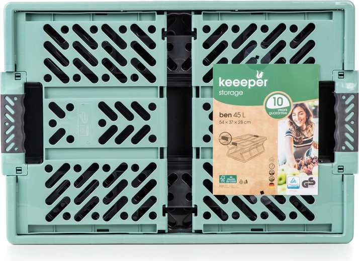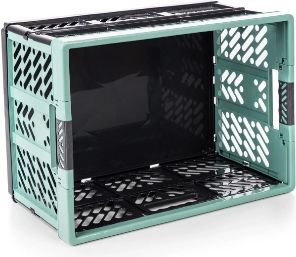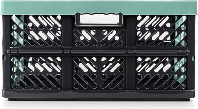 Denne holdbare sammenklappelige kasse i sort-grøn udførelse kombinerer lav vægt med høj bæreevne på 50 kg. Den er perfekt til bilen, garagen, værkstedet og hjemmet – bær nemt indkøb, sportsudstyr eller haveartikler. Efter brug foldes den til flad form på få sekunder og sparer plads.
