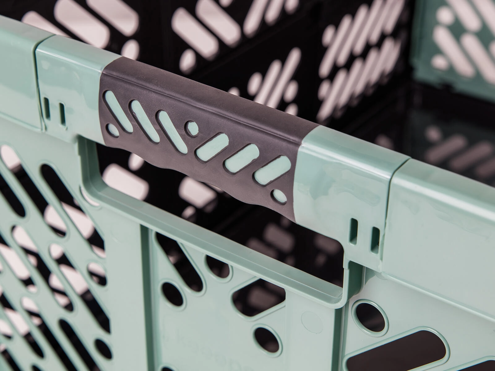 Praktiske bløde håndtag sikrer et behageligt greb selv ved større belastning. Ventilerede sider forbedrer overblikket og luftcirkulationen, mens den robuste ramme holder formen og muliggør stabling. Det holdbare plastmateriale er let at rengøre og egnet til gentagen daglig brug.