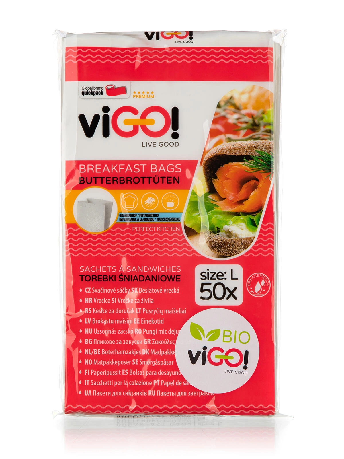 Praktiske og miljøvenlige papirposer til madpakker i størrelsen 22 × 19 cm, i en pakke med 50 stk. De er voksede for modstandsdygtighed over for fedt, har FSC-certifikat og hjælper med at reducere brugen af plast.