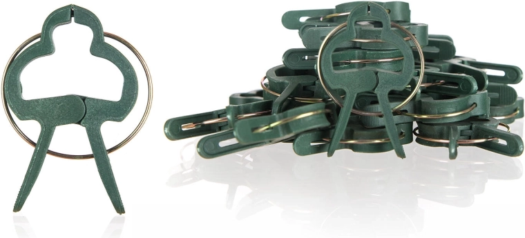 Klipsene er fremstillet af holdbar plast med metalfjeder, så de tåler gentagen brug gennem hele sæsonen. Ideelle til tomater, peberfrugter, agurker, krydderurter og indendørs klatreplanter.