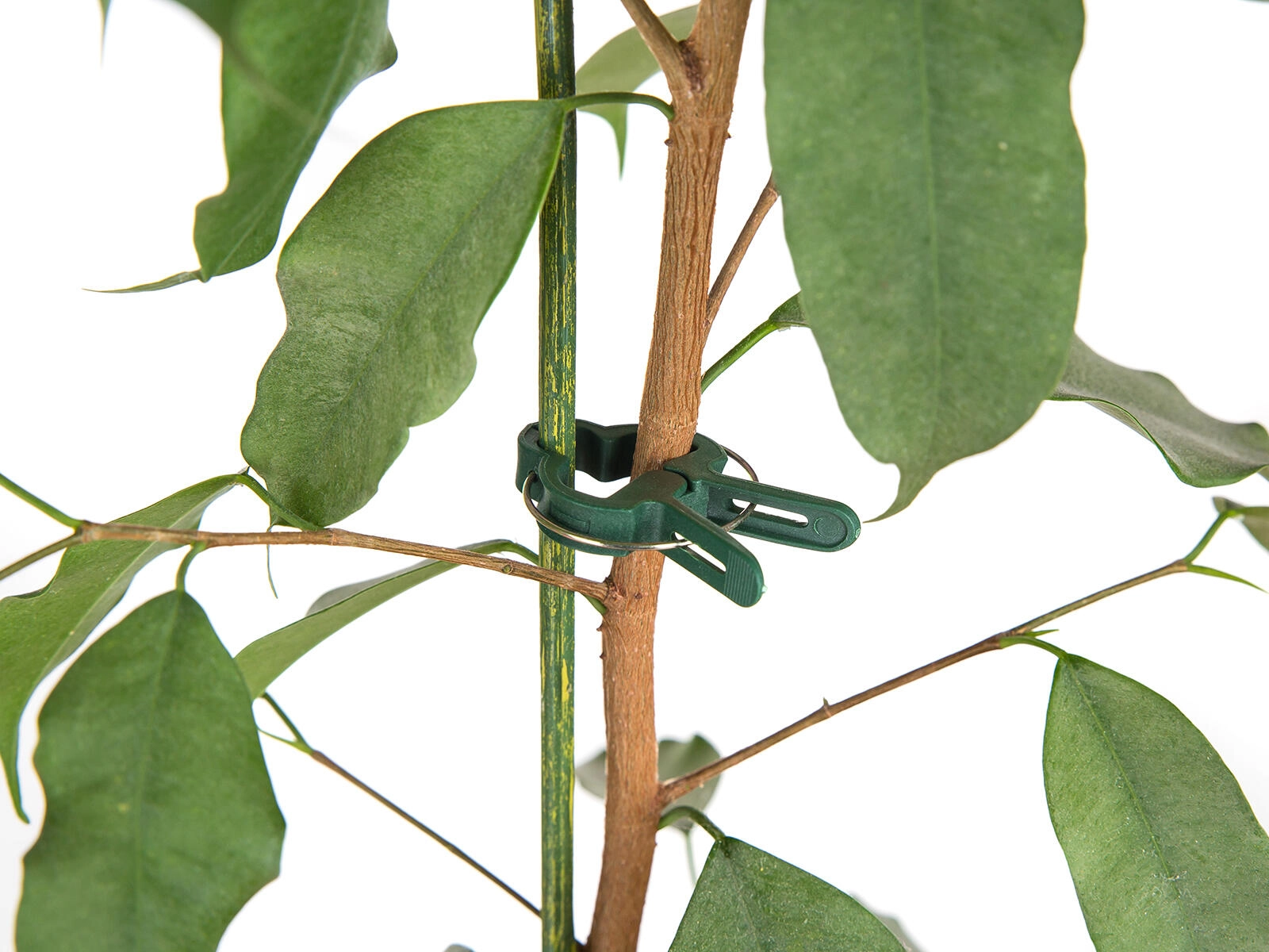 Fjederklipsen holder sikkert stænglerne til støtten uden skader og brud. Perfekt til sarte unge planter såvel som kraftigere skud.