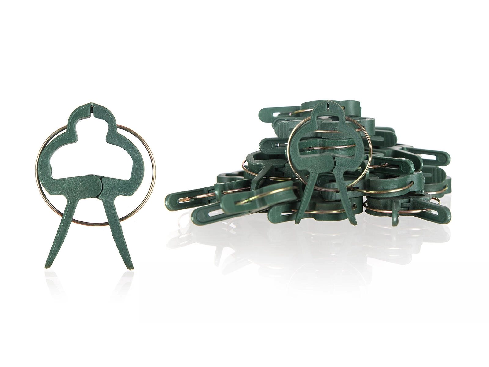 Plastkrop med metalfjeder sikrer lang levetid. Klipsene kan let åbnes, flyttes og bruges igen hele sæsonen.