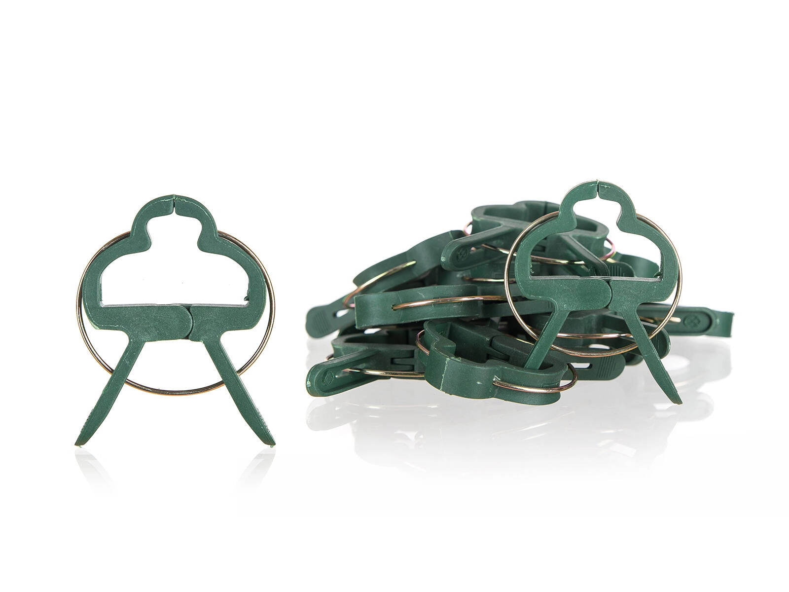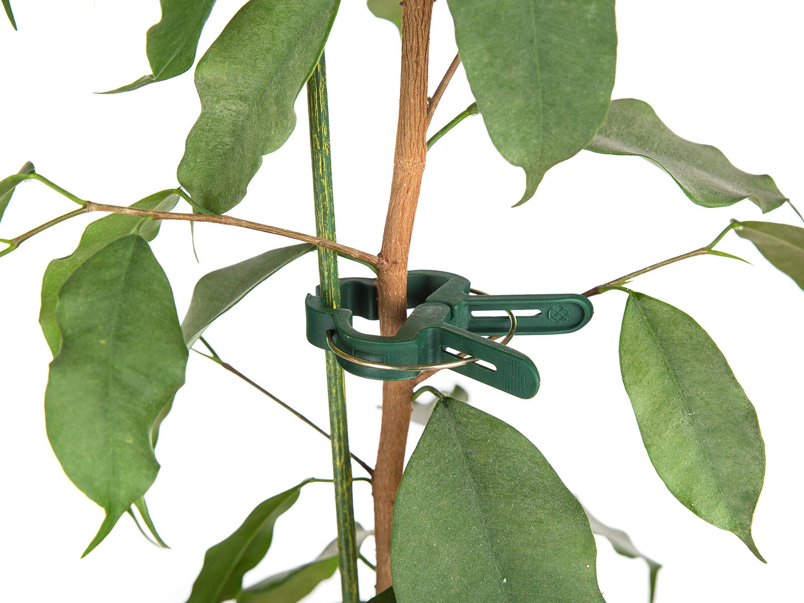 Gør dyrkningen nemmere med holdbare klemmer til opbinding af planter. De fastgør let stænglen til en pind eller et gitter og holder sikkert, men skånsomt takket være fjeder-mekanismen. Ingen besværlige knuder eller kvalte skud – klemmerne kan bruges igen og igen og passer til almindelige plantestøtter.