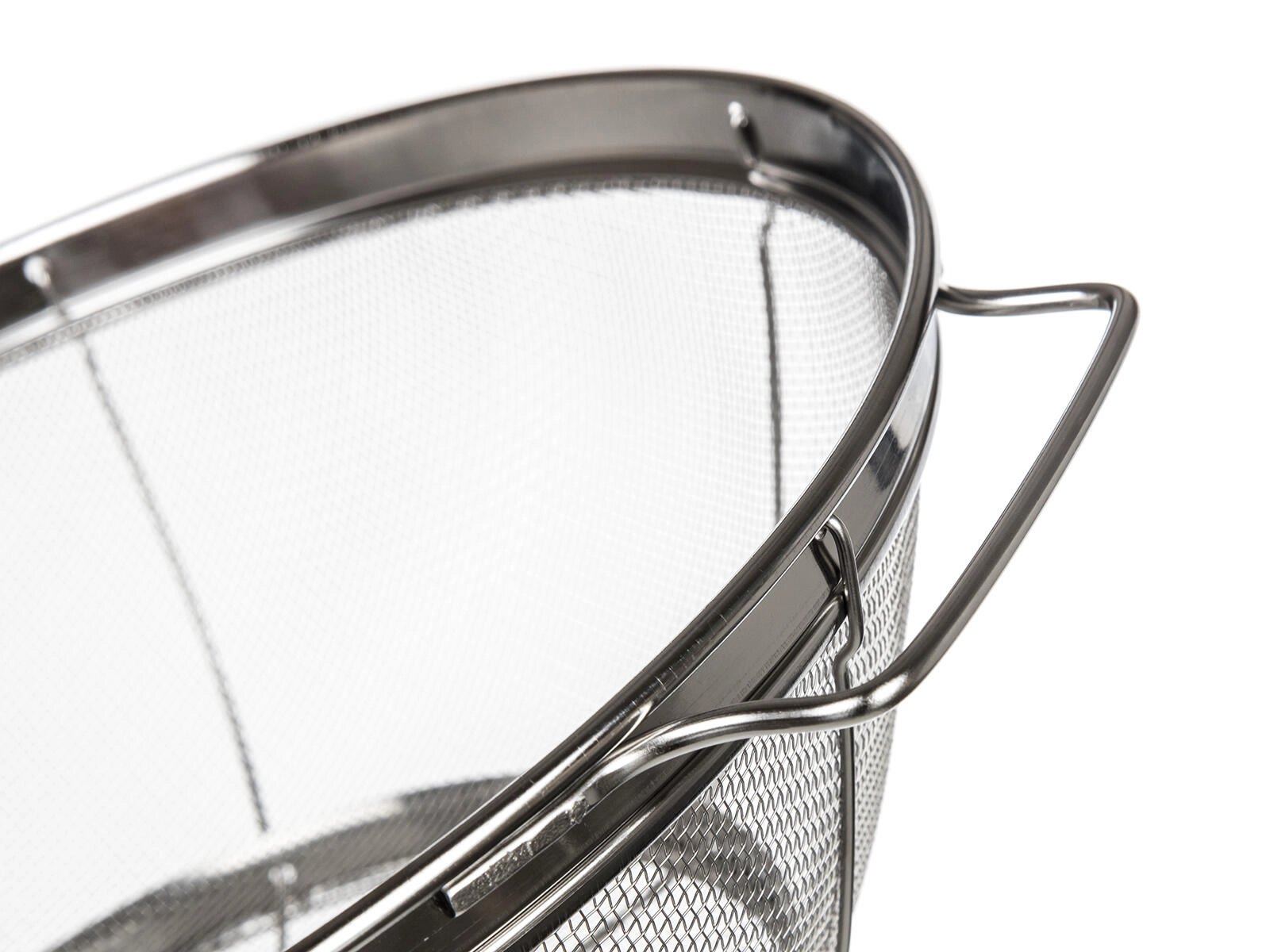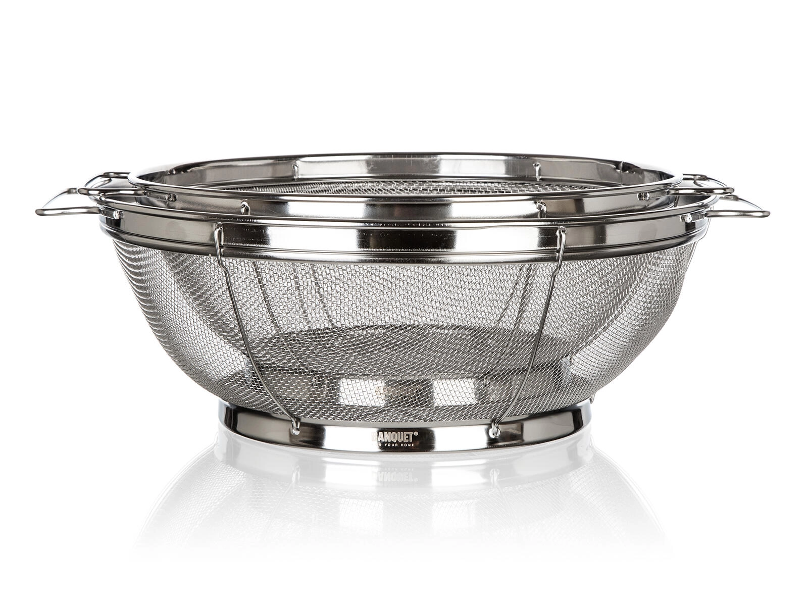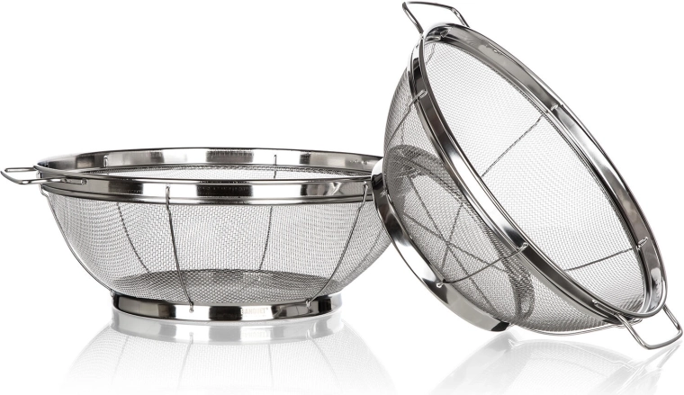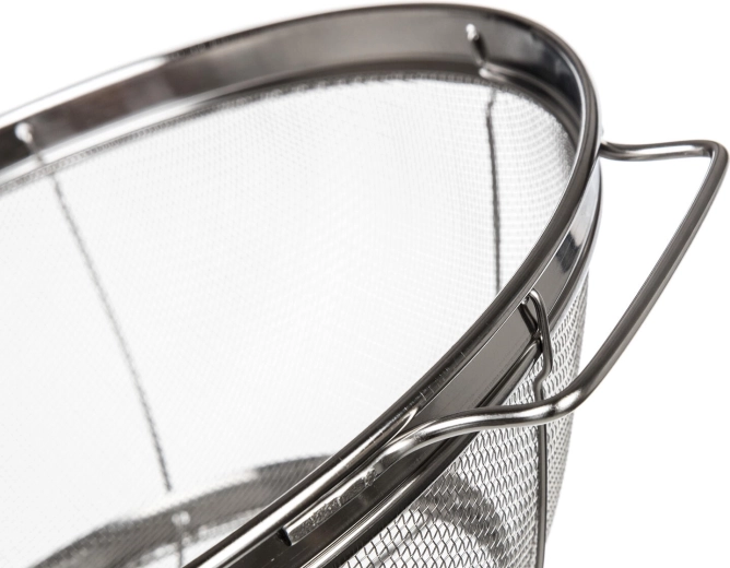 Ekstra fint rustfrit stålnet tilbageholder selv små stykker mad og sikrer hurtig afdrypning ved skylning af frugt, grøntsager og ved siing af pasta.