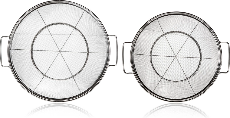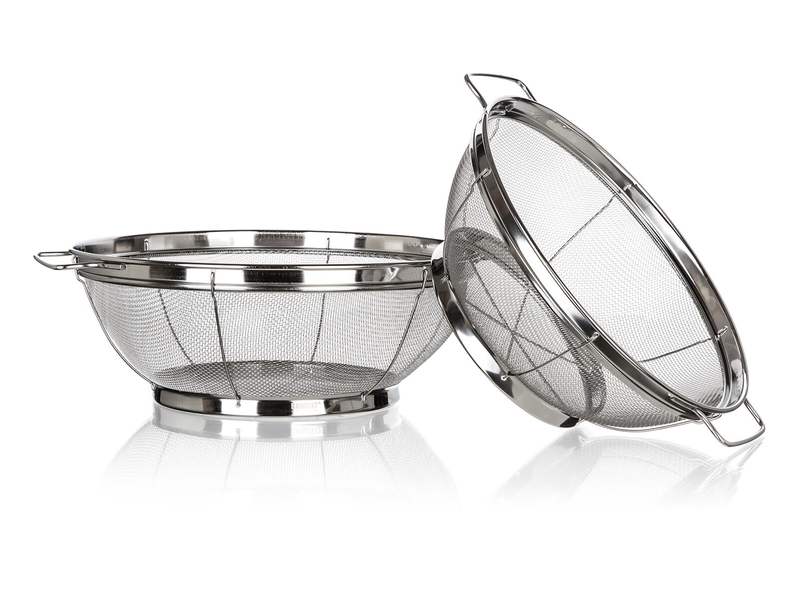 Praktisk sæt med to netsier af rustfrit stål med sokkel AKCENT i diametre på 21,5 og 24,5 cm er ideelle til daglig madlavning. Takket være det fine net, den stabile sokkel og de fastmonterede sidehåndtag kan du nemt og hurtigt skylle frugt og grøntsager eller si pasta. Fremstillet af kvalitets rustfrit stål 18/8 for lang levetid og nem vedligeholdelse.