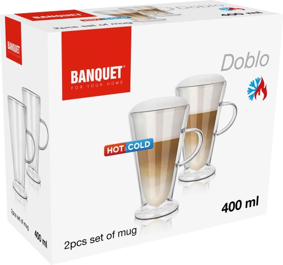 Elegante DOBLO-krus med dobbeltvæg på 400 ml er ideelle til både kaffe- og teelskere. Takket være det varmeisolerende dobbeltglas holder drikken sig længere varm eller kold, mens den ydre væg forbliver behageligt kølig. Stor kapacitet på 400 ml, komfortabel hank og mulighed for opvask i opvaskemaskine gør dem til et perfekt valg til daglig brug.