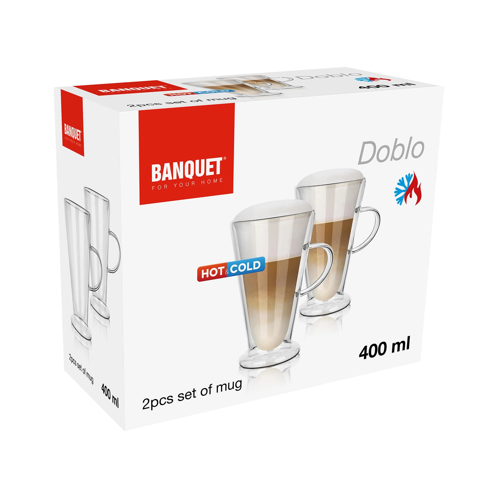 Dobbeltvæggede glaslattekrus 400 ml DOBLO, sæt med 2 stk.