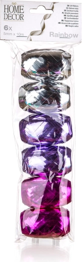 Pynt gaverne stilfuldt med sættet af gavebånd RAINBOW i et farvemix. Hvert bånd har en længde på 10 m og en bredde på 0,5 cm, ideelt til indpakning af gaver, poser og dekorationer. Pakken indeholder 6 styk til kreativ kombination.