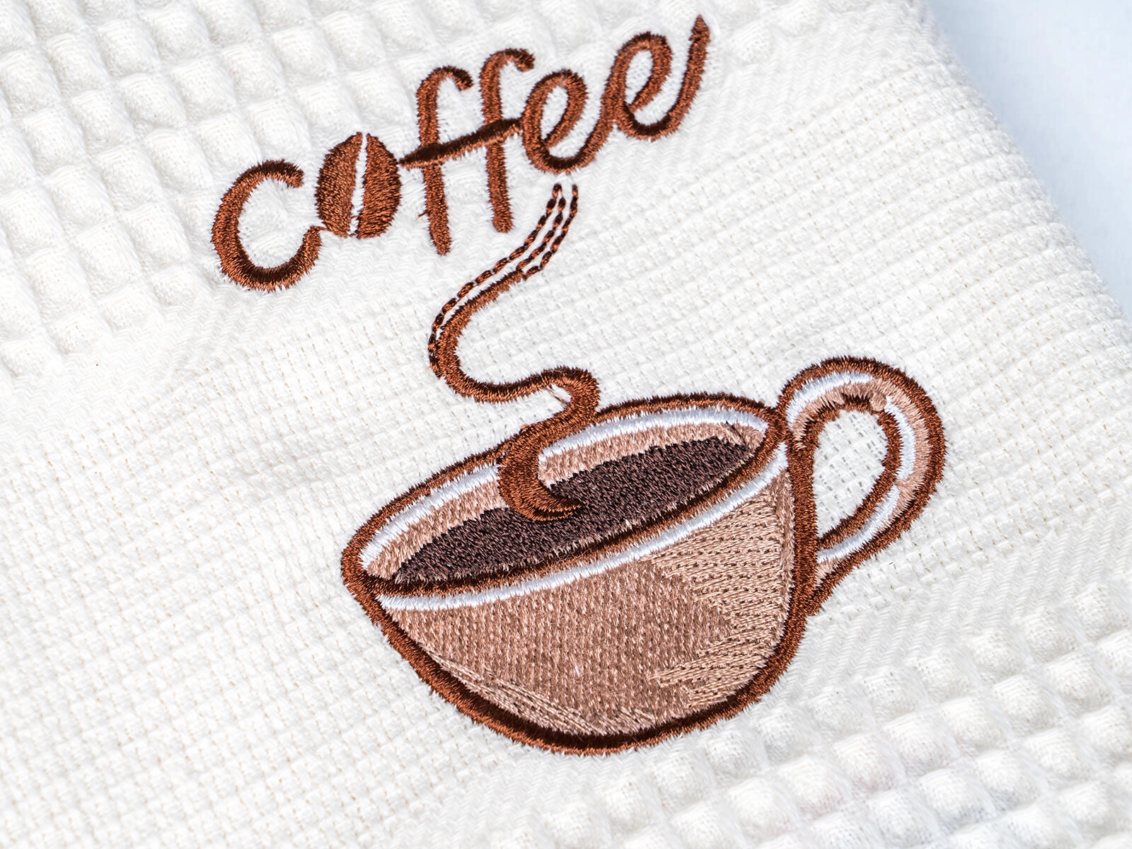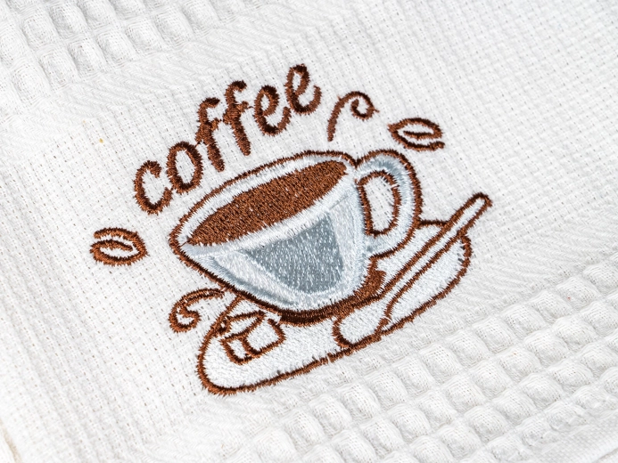 De populære vaffelhåndklæder med elegant COFFEE-broderi er uundværlige til aftørring af service og hænder. Takket være den høje kvalitet af bomuld suger de effektivt, tørrer hurtigt og holder længe. De tidløse farver er nemme at matche med andet køkkentekstil.