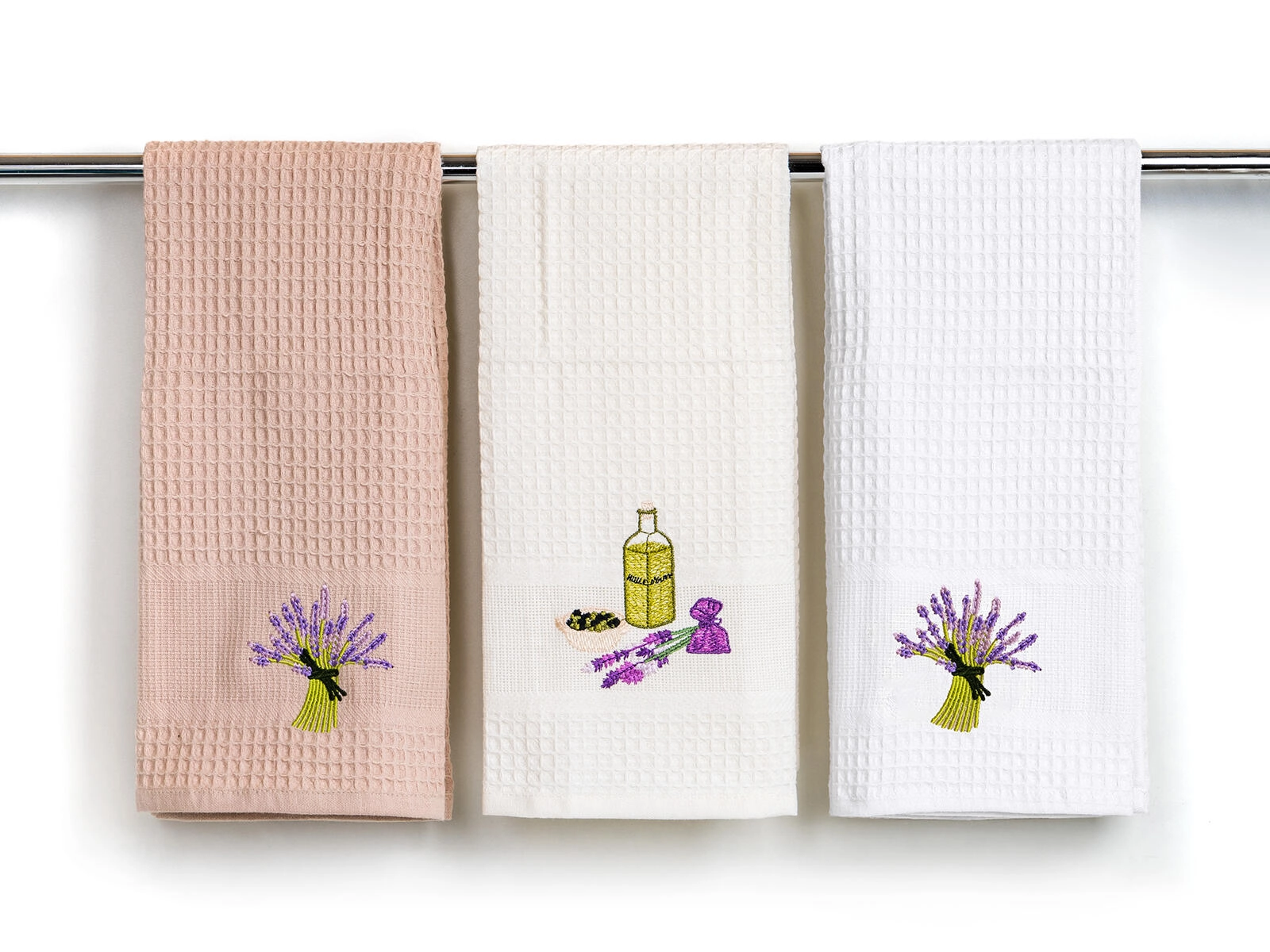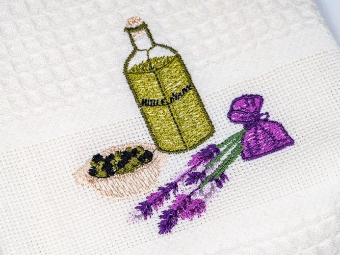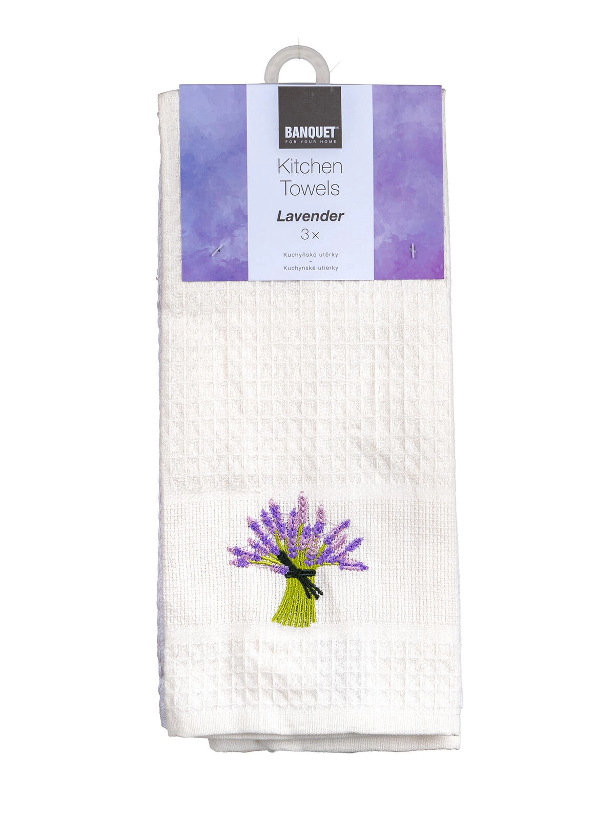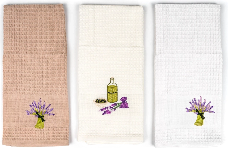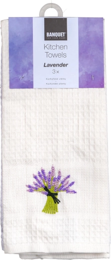 Fine lavendelmønstre giver køkkenet stil og harmoni. Håndklæderne fungerer også glimrende som en smagfuld gave.