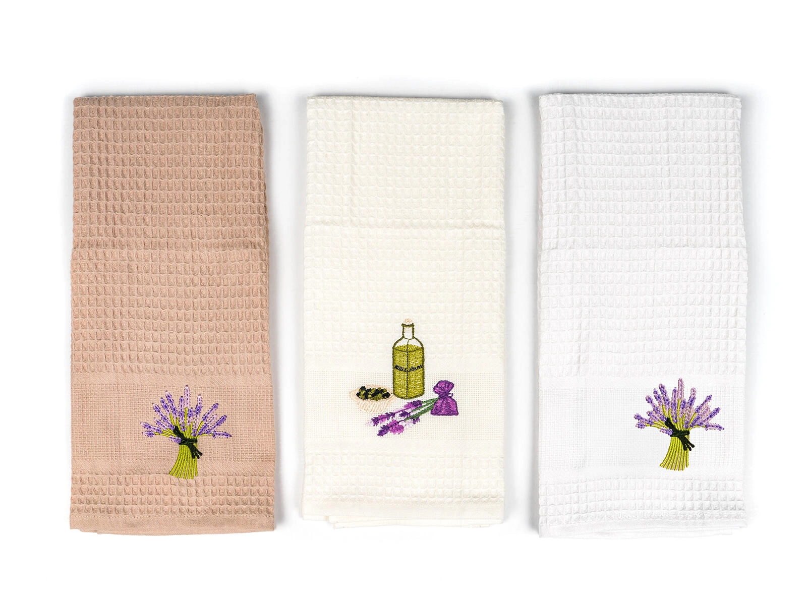 Oplev kvalitet og design i ét: disse vaffelvævede køkkenhåndklæder med fint lavendelbroderi er ikke kun smukke, men også særdeles funktionelle. Takket være den tætte vaffelvævning suger de fremragende, efterlader ingen striber og ligger behageligt i hånden. Målet 45 × 70 cm giver rigelig plads til bekvem tørring af service og hænder.