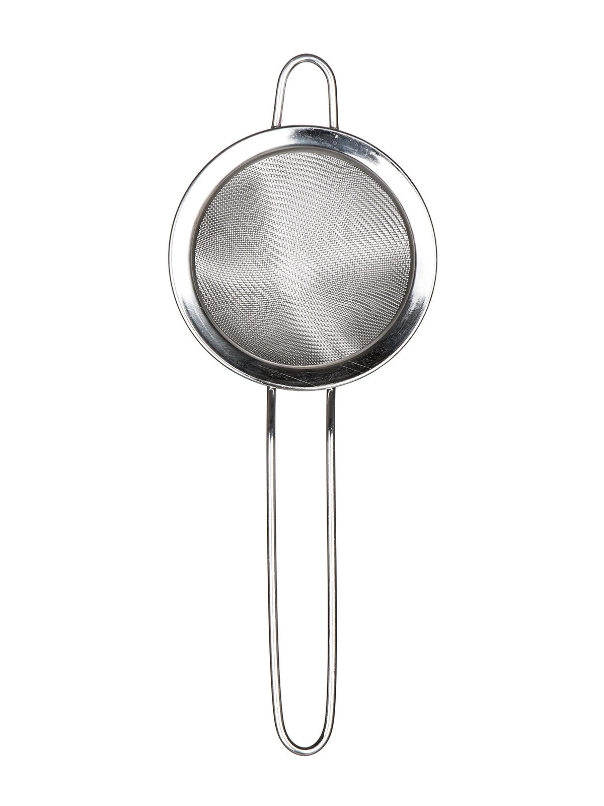 Ideel størrelse til at sile direkte i krus, mindre skåle eller kasseroller, med praktisk øje til ophæng.