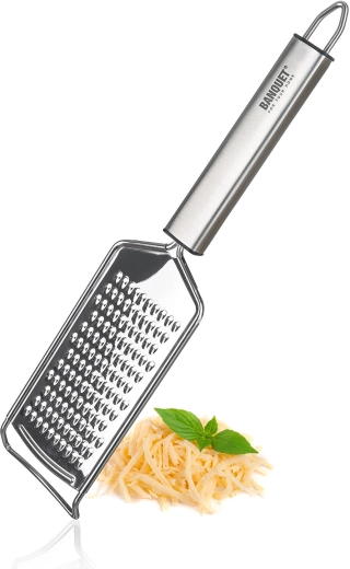 Ideelt til daglig madlavning – riv hurtigt grøntsager, ost, chokolade og andre råvarer. Materialet i rustfrit stål er let at rengøre og modstandsdygtigt over for korrosion, hvilket gør det perfekt til det moderne køkken.